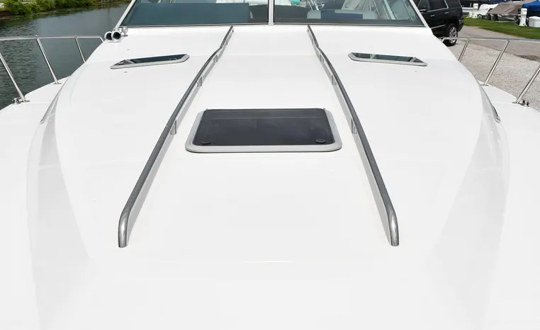Freshwater / Great Lakes boat since new this vessel features Twin MerCruiser 454-cid 340-hp Gas Inboard Engine's with 1451 original hours. Notable features include but are not limited to the following: Air-Conditioning & Heat (2-Units), Head (Vacuflush) w/Vanity/Sink/Stall-Shower, Central Vacuum, 7.5kw Quicksilver Generator, Windlass Anchor, Canvas Package (Cockpit Mooring Cover, Convertible-Top w/Forward / Side-Windows / Slant-Back Rear), Premium Sound System w/CD-Player, Swim Platform w/Boarding Ladder, and MUCH more!