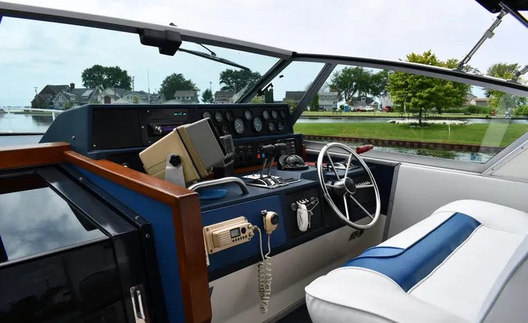 Freshwater / Great Lakes boat since new this vessel features Twin MerCruiser 454-cid 340-hp Gas Inboard Engine's with 1451 original hours. Notable features include but are not limited to the following: Air-Conditioning & Heat (2-Units), Head (Vacuflush) w/Vanity/Sink/Stall-Shower, Central Vacuum, 7.5kw Quicksilver Generator, Windlass Anchor, Canvas Package (Cockpit Mooring Cover, Convertible-Top w/Forward / Side-Windows / Slant-Back Rear), Premium Sound System w/CD-Player, Swim Platform w/Boarding Ladder, and MUCH more!