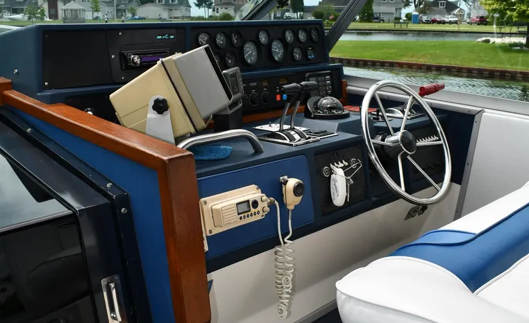Freshwater / Great Lakes boat since new this vessel features Twin MerCruiser 454-cid 340-hp Gas Inboard Engine's with 1451 original hours. Notable features include but are not limited to the following: Air-Conditioning & Heat (2-Units), Head (Vacuflush) w/Vanity/Sink/Stall-Shower, Central Vacuum, 7.5kw Quicksilver Generator, Windlass Anchor, Canvas Package (Cockpit Mooring Cover, Convertible-Top w/Forward / Side-Windows / Slant-Back Rear), Premium Sound System w/CD-Player, Swim Platform w/Boarding Ladder, and MUCH more!