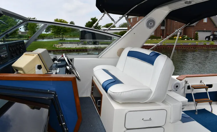 Freshwater / Great Lakes boat since new this vessel features Twin MerCruiser 454-cid 340-hp Gas Inboard Engine's with 1451 original hours. Notable features include but are not limited to the following: Air-Conditioning & Heat (2-Units), Head (Vacuflush) w/Vanity/Sink/Stall-Shower, Central Vacuum, 7.5kw Quicksilver Generator, Windlass Anchor, Canvas Package (Cockpit Mooring Cover, Convertible-Top w/Forward / Side-Windows / Slant-Back Rear), Premium Sound System w/CD-Player, Swim Platform w/Boarding Ladder, and MUCH more!