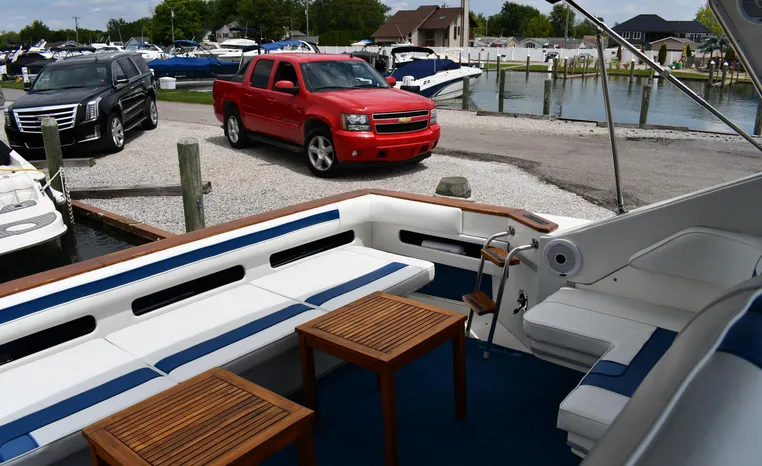Freshwater / Great Lakes boat since new this vessel features Twin MerCruiser 454-cid 340-hp Gas Inboard Engine's with 1451 original hours. Notable features include but are not limited to the following: Air-Conditioning & Heat (2-Units), Head (Vacuflush) w/Vanity/Sink/Stall-Shower, Central Vacuum, 7.5kw Quicksilver Generator, Windlass Anchor, Canvas Package (Cockpit Mooring Cover, Convertible-Top w/Forward / Side-Windows / Slant-Back Rear), Premium Sound System w/CD-Player, Swim Platform w/Boarding Ladder, and MUCH more!