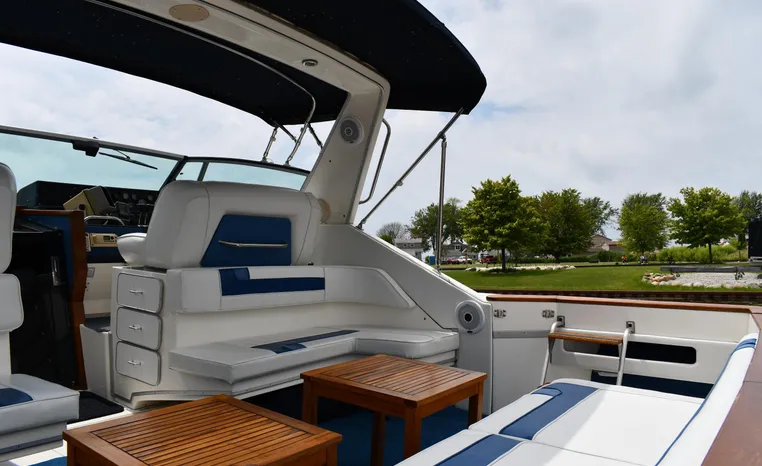 Freshwater / Great Lakes boat since new this vessel features Twin MerCruiser 454-cid 340-hp Gas Inboard Engine's with 1451 original hours. Notable features include but are not limited to the following: Air-Conditioning & Heat (2-Units), Head (Vacuflush) w/Vanity/Sink/Stall-Shower, Central Vacuum, 7.5kw Quicksilver Generator, Windlass Anchor, Canvas Package (Cockpit Mooring Cover, Convertible-Top w/Forward / Side-Windows / Slant-Back Rear), Premium Sound System w/CD-Player, Swim Platform w/Boarding Ladder, and MUCH more!