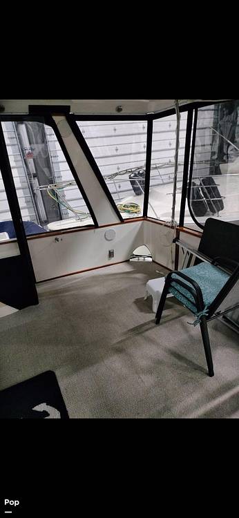 As you enter aft through the Plexiglass wing doors into the enclosed deck with a hard top, you will note the new Isinglass Enclosure. The central main salon is functional for lounging and relaxing with friends. The large aft bedroom with a queen-size walk-around bed is your home away from home while traveling in comfort on those short or long trips.