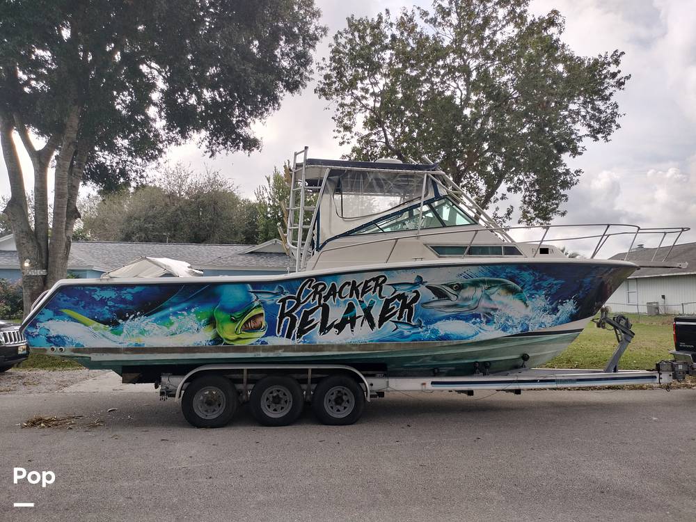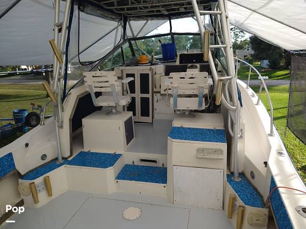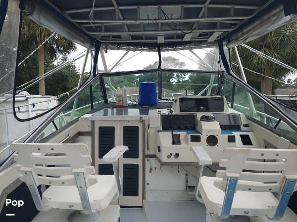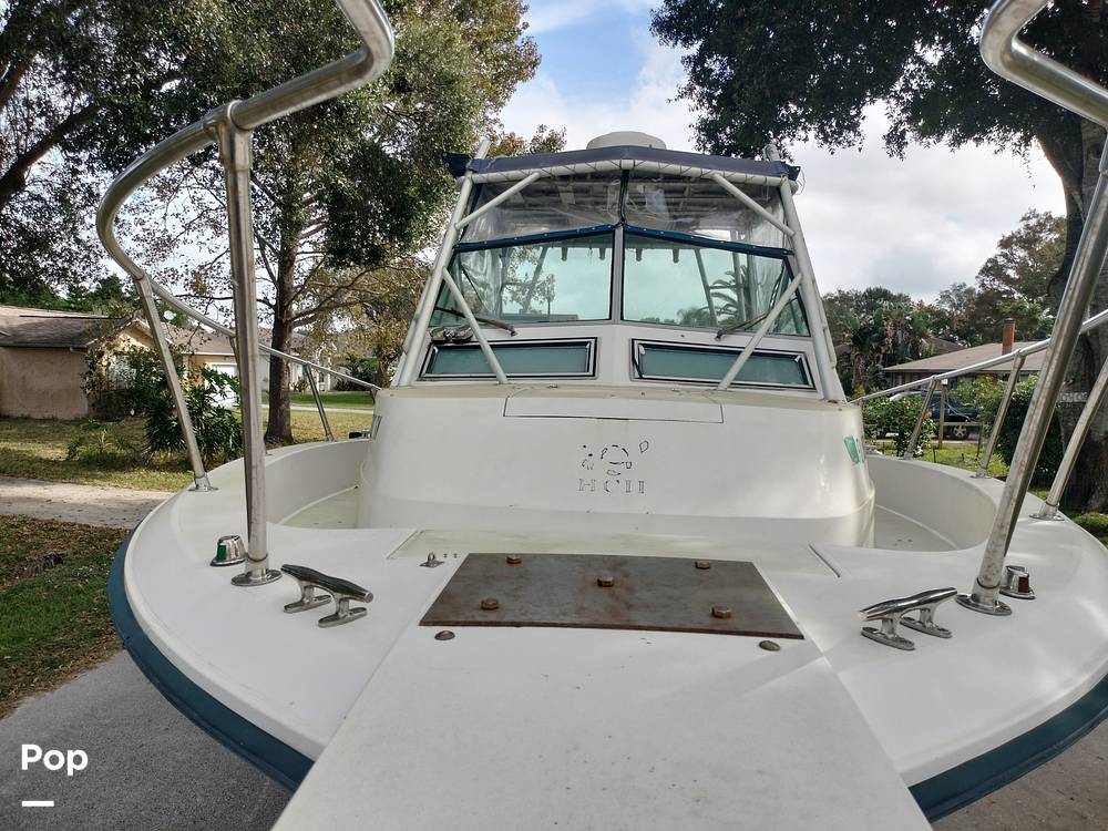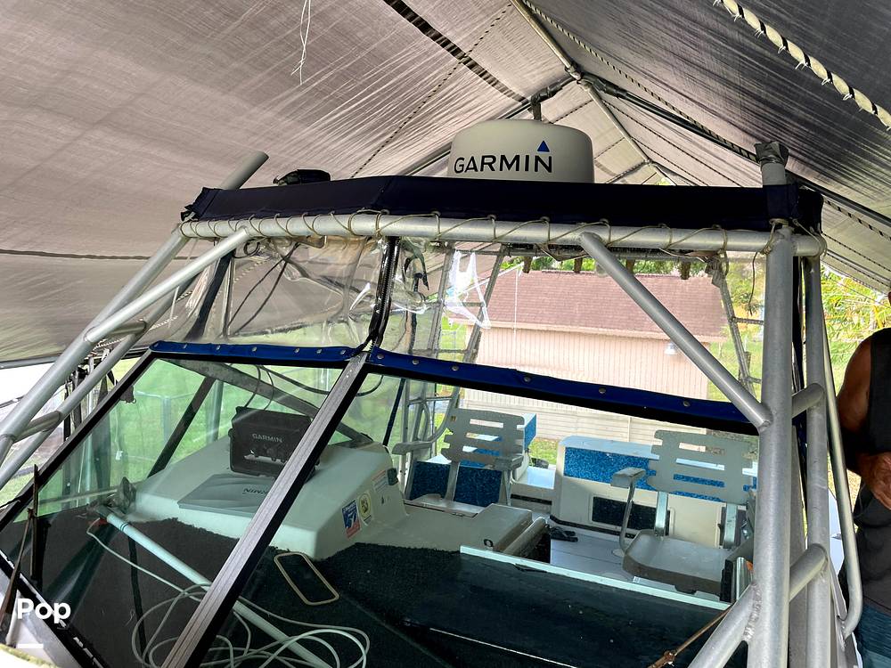 The cabin has a 12 volt refrigerator, sink, stove, Air conditioner, head, microwave. Above deck has a bait station with sink, lots of storage, live well with fresh and salt water washdown, and Lee outriggers. The owner is including life jackets and anchor.