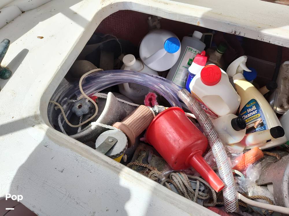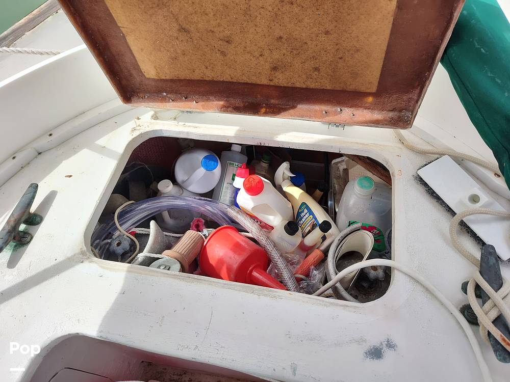 The interior features a Shipmate stove in the galley with a foot pump for the sink water.