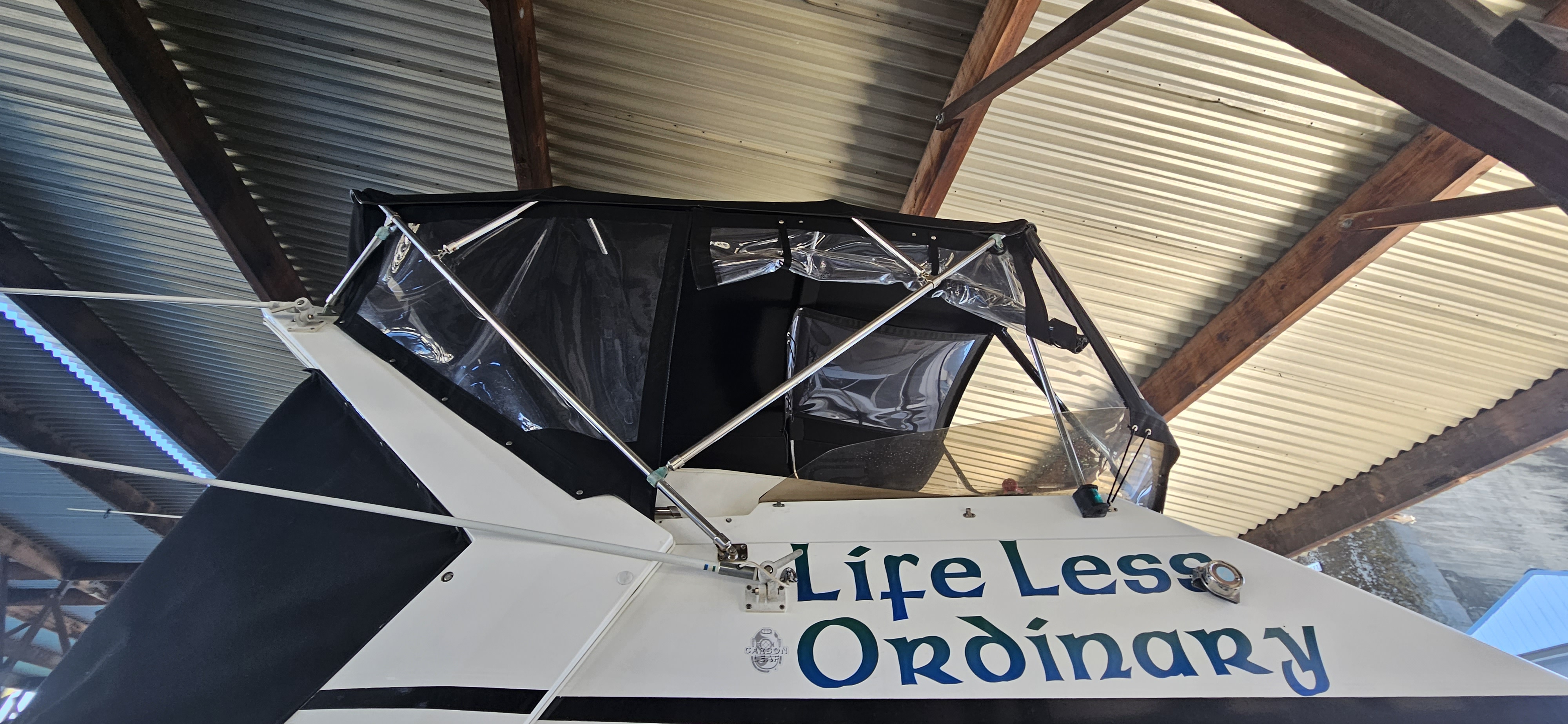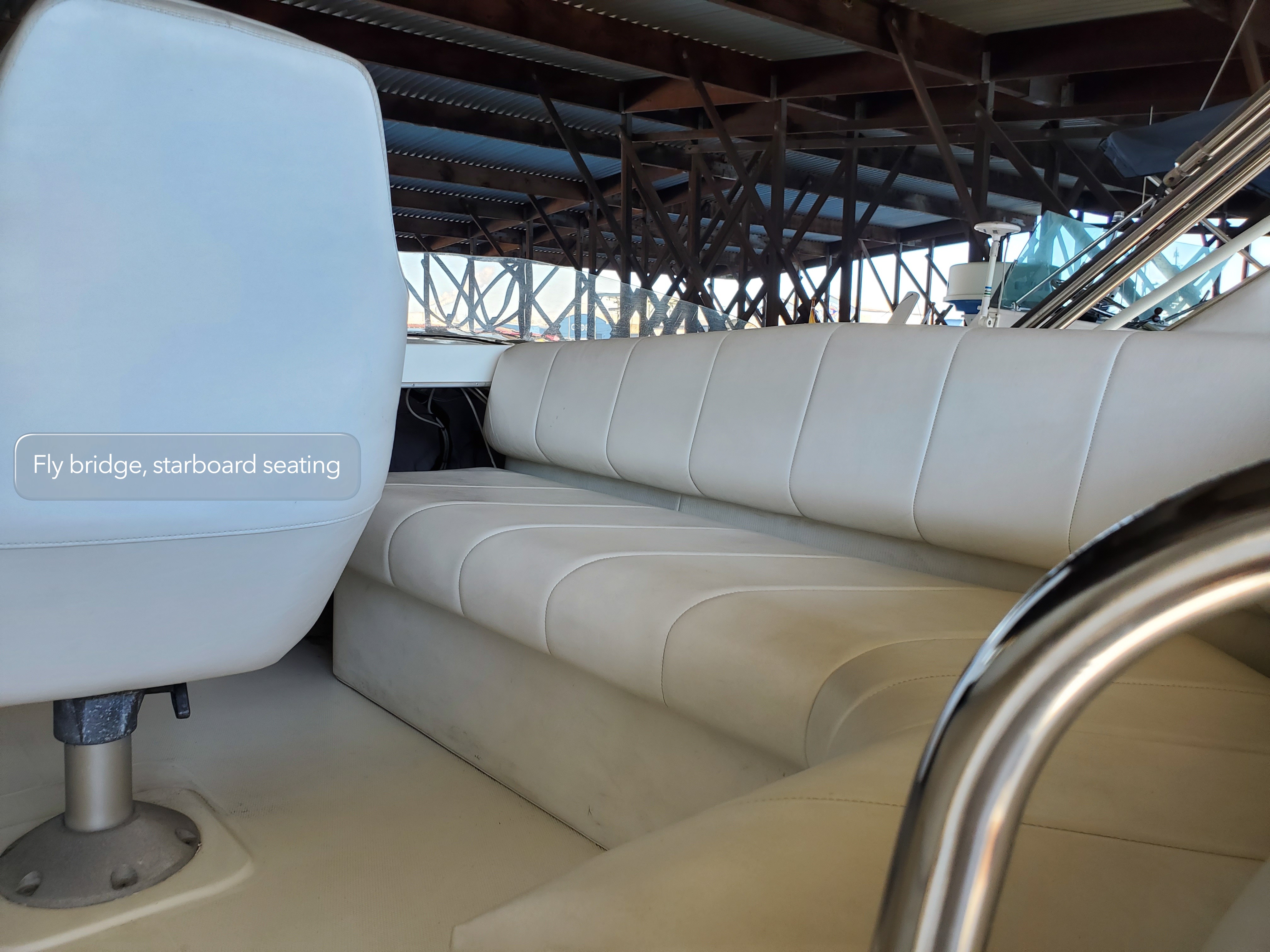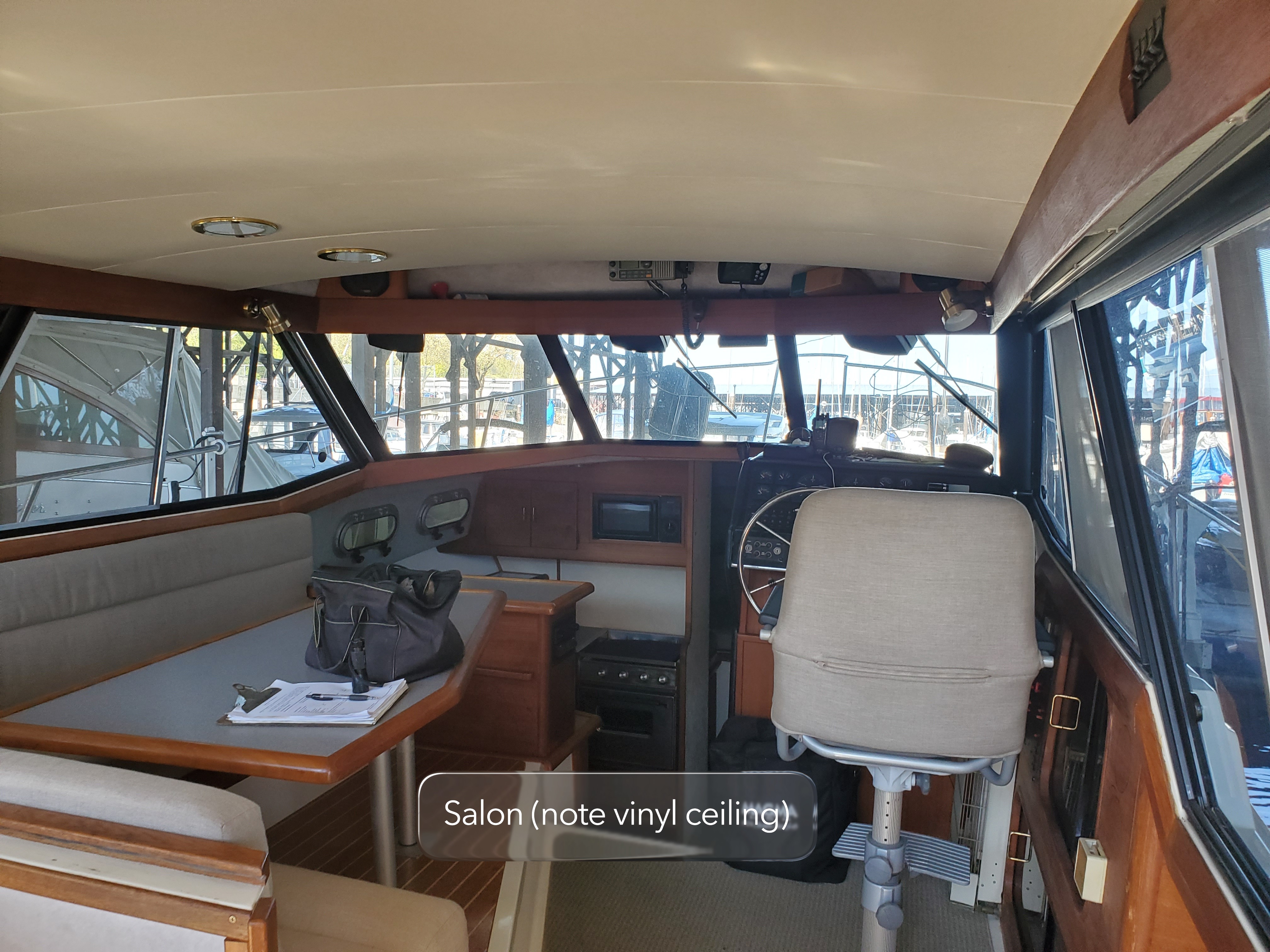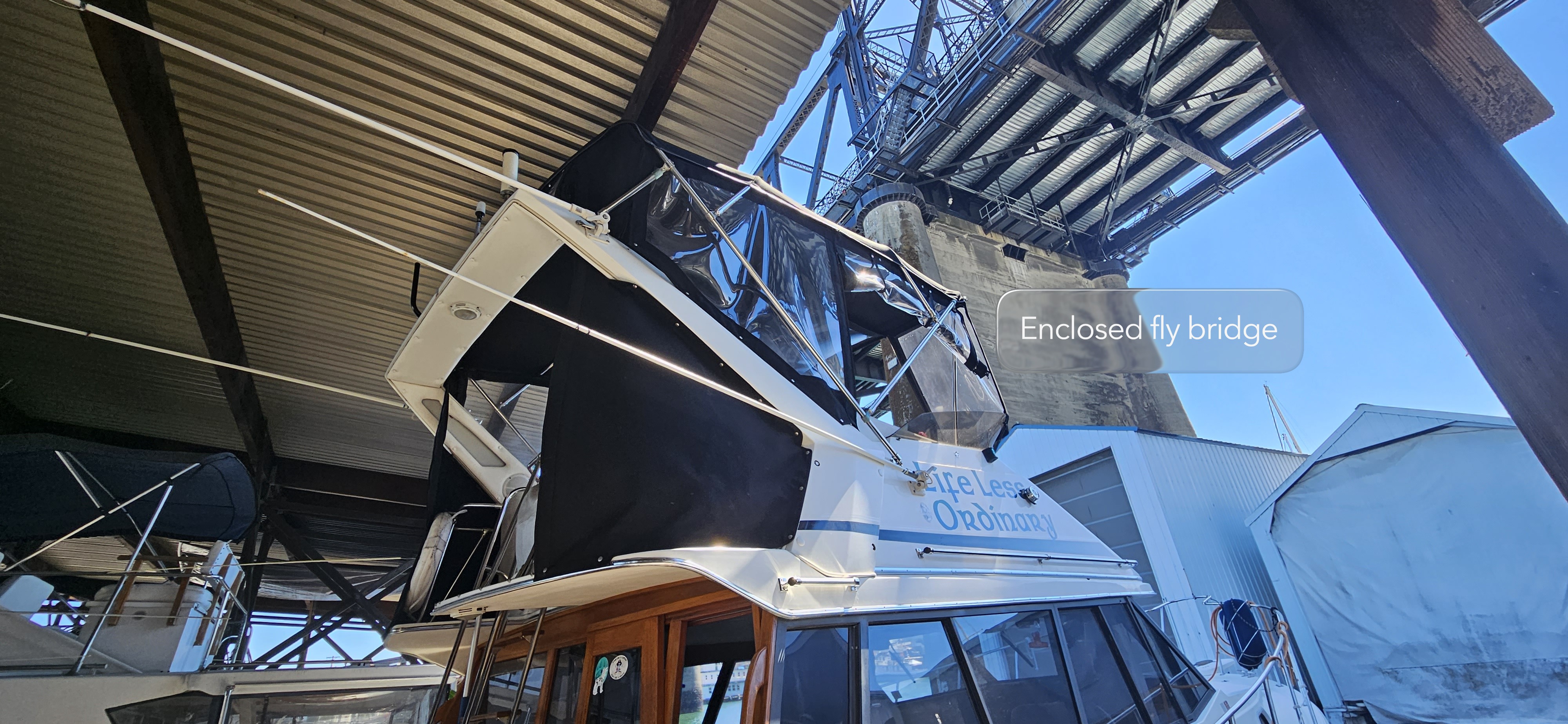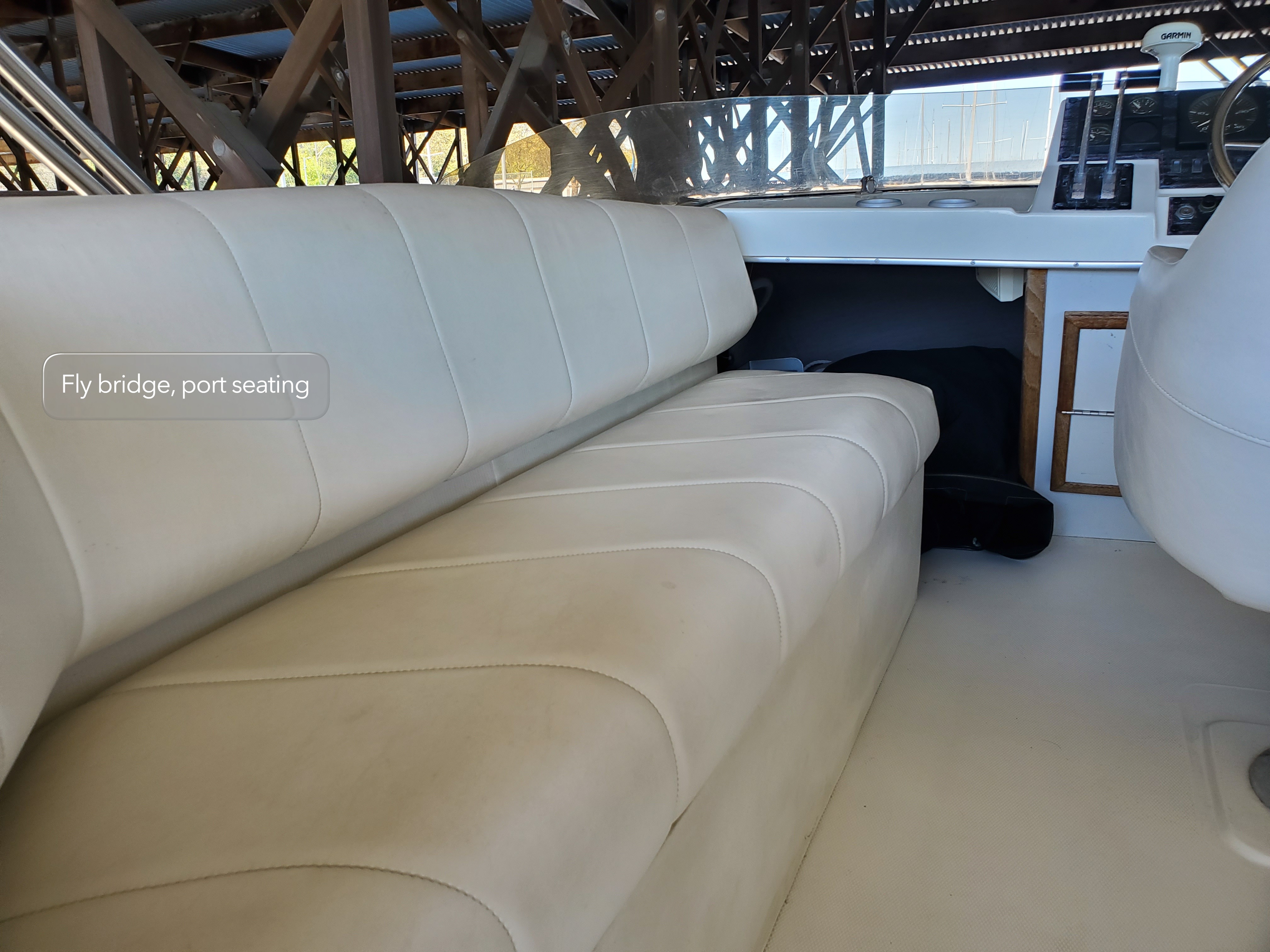 This cruiser is powered by twin 150 hp turbo charged 4-cylinder Hino diesel engines known for their reliability and efficiency. The bottom was cleaned and painted in Jan. 2023. The fly bridge was enclosed in 2022. Maintenance records are available.