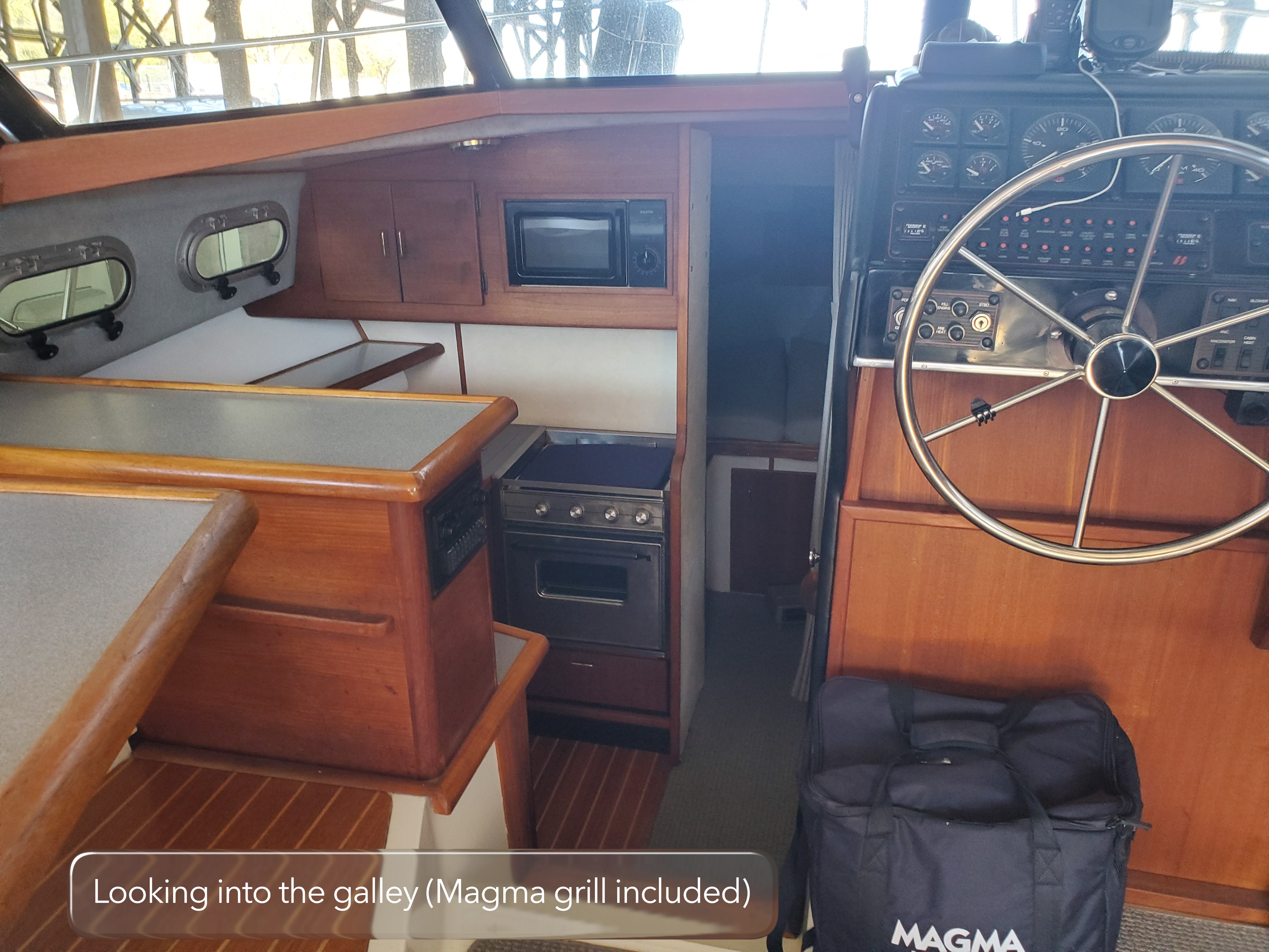The 3288 was one of Bayliner’s most popular boats. It continues to be a favorite based on its functional, easy, comfortable, and accommodating layout: large separate cabins, sunken galley, raised seating and large wrap around windows making you feel like you’re in a larger boat.