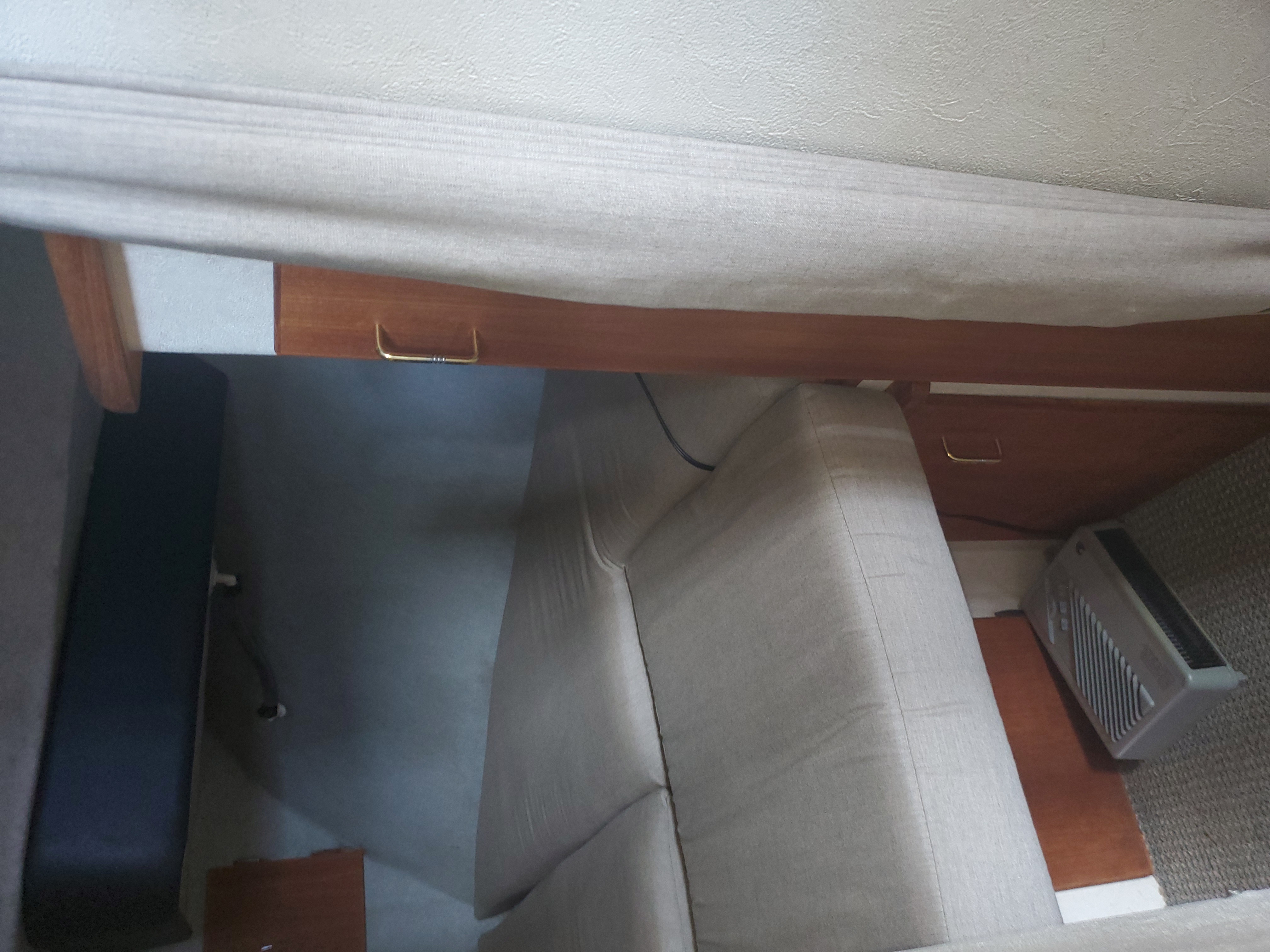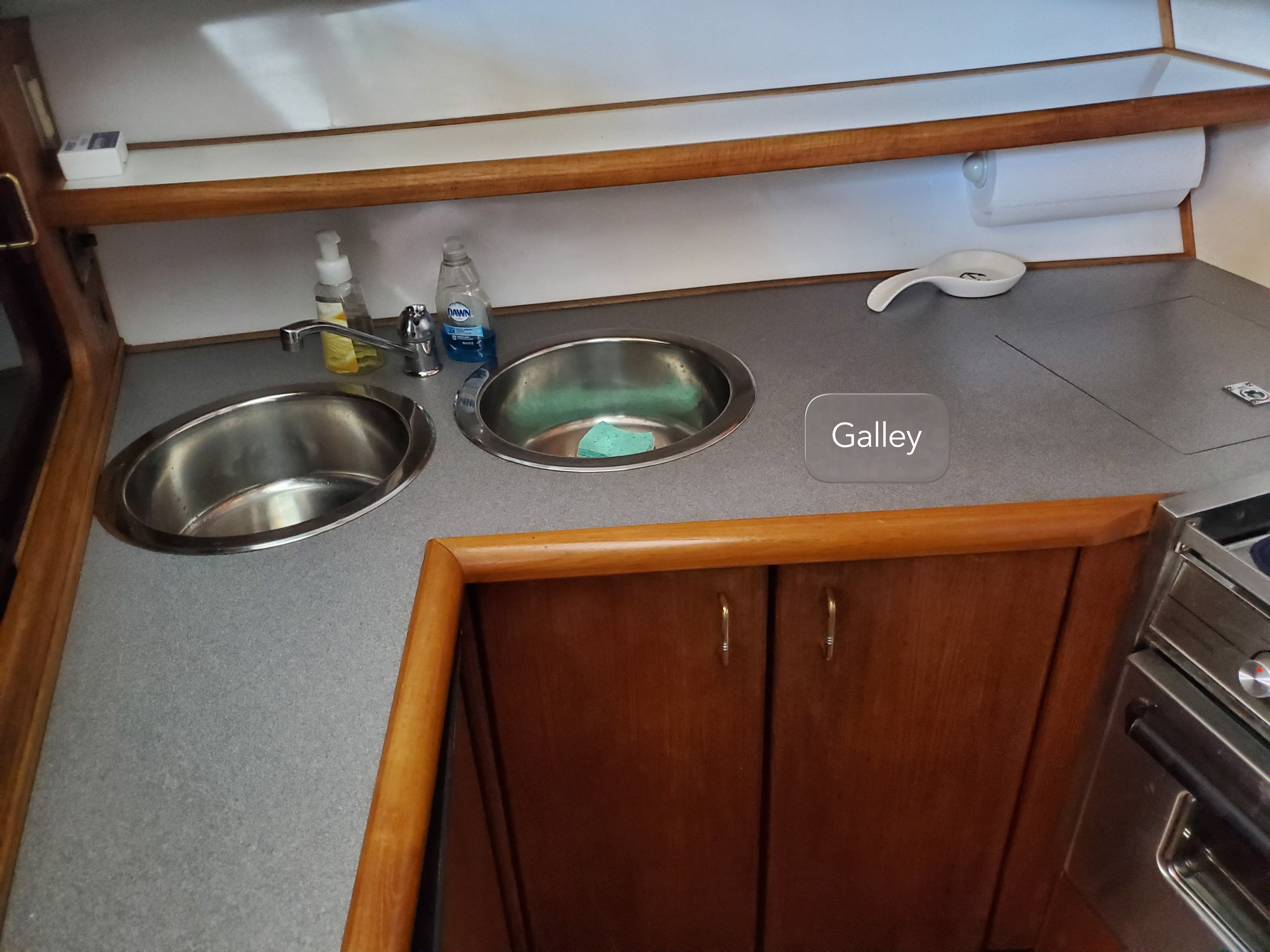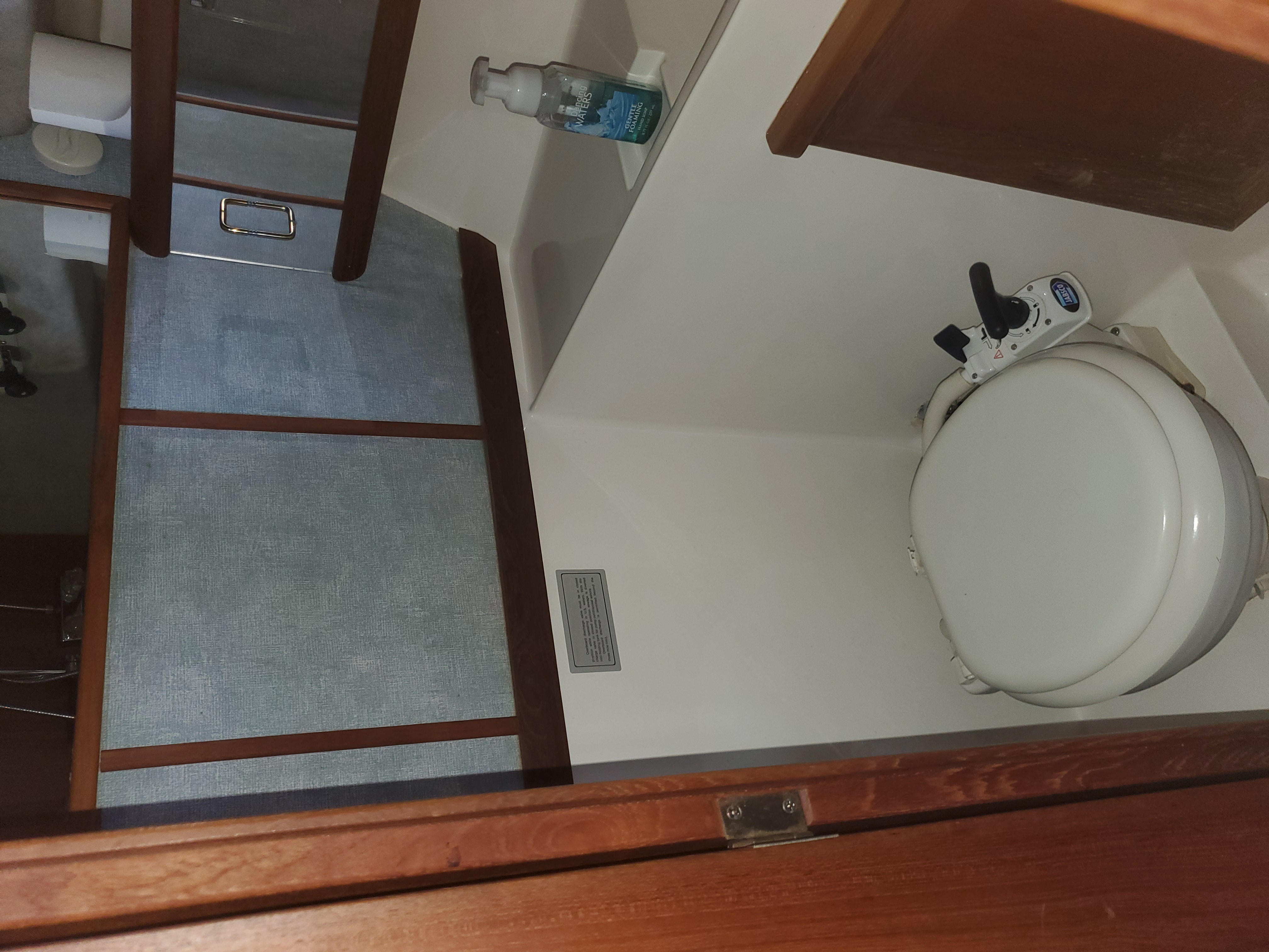 This versatile boat accommodates 6 adults (2 in the v-berth, 2 on the settee, and 2 in the stateroom), or 4+ kiddos and 4 adults (adults in the v-berth and settee and kiddos in the stateroom king bed).