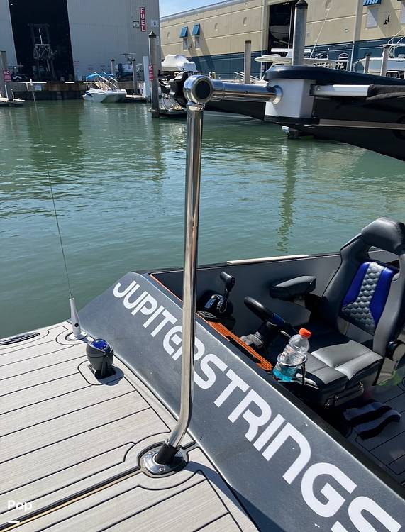 An aftermarket aluminum outboard bracket was mounted on a new transom. The boat has custom SeaDeck flooring, walls and full bow. The cockpit features a Standard Horizon VHF, Simrad GO7, Fusion MS-RA70, Bennett trim tabs (12x12) and Suzuki multi-function SMG4 gauges.