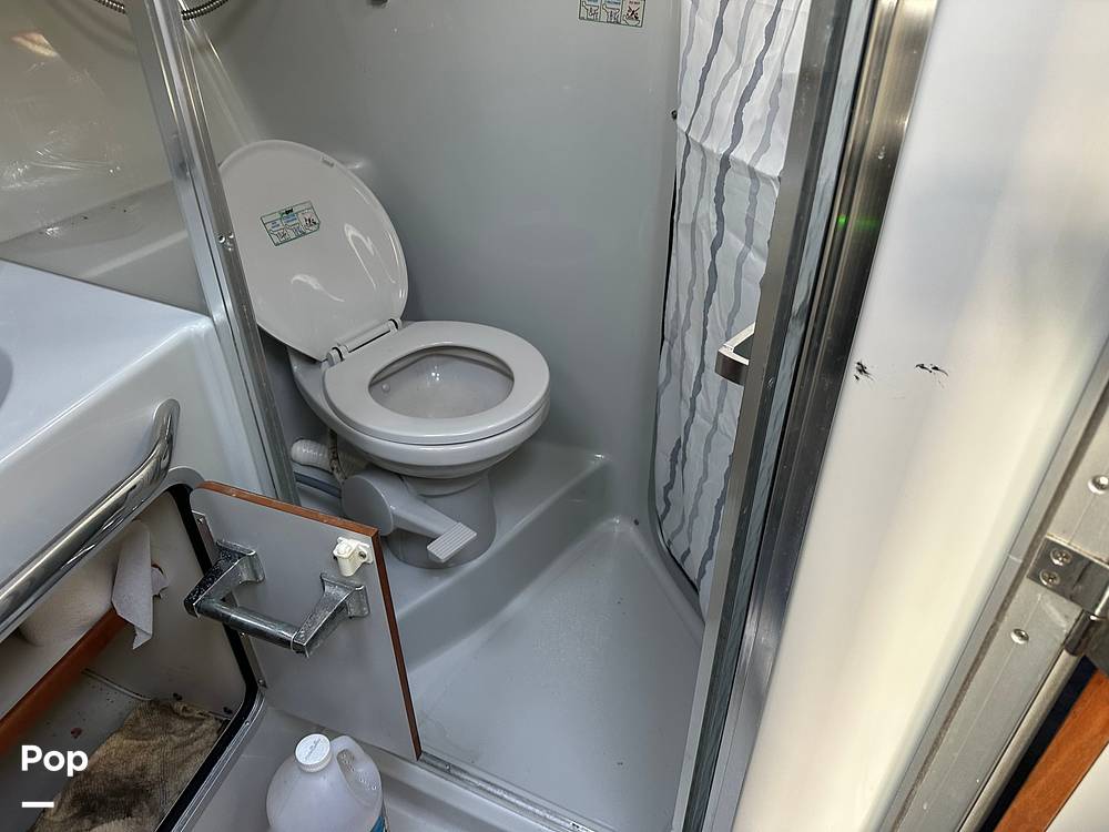 Inside, the cabin is spacious and comfortable, with plenty of headroom and all the modern amenities you need for overnight stays. The galley is fully equipped with a refrigerator, stove, and microwave, so you can easily prepare meals while out on the water. The convertible dinette provides extra seating or a cozy spot for sleeping when needed.