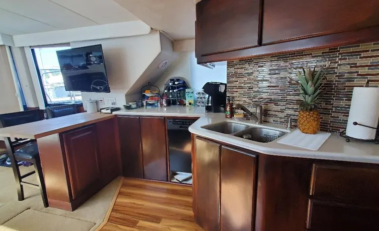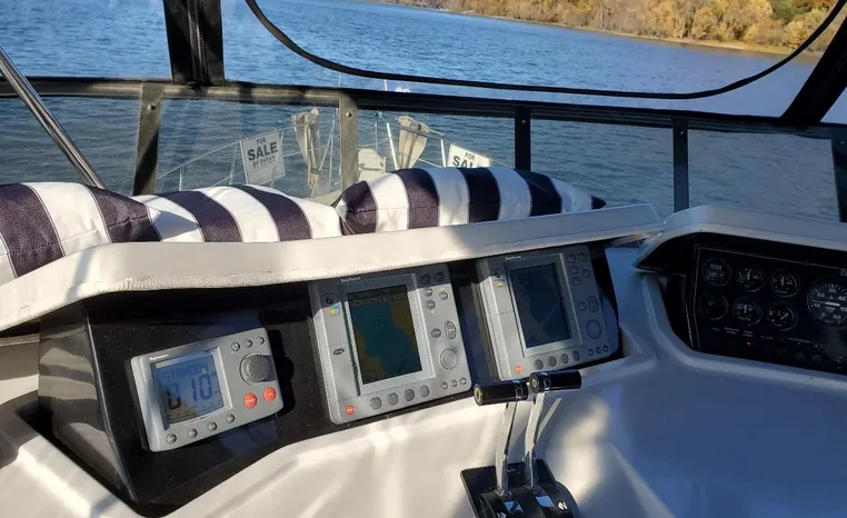 This yacht has been meticulously maintained and updated throughout, reflecting careful ownership and pride of care. The interior is spacious and functional, equipped with a full-size refrigerator and freezer to support longer trips and comfortable onboard living. Power is provided by twin Crusader 7.4L gasoline engines with 1,658 hours, both featuring closed-cooling systems for longevity and dependable performance. Electrical needs are supported by a Westerbeke 15kW generator with 1,358 hours, also closed cooling.