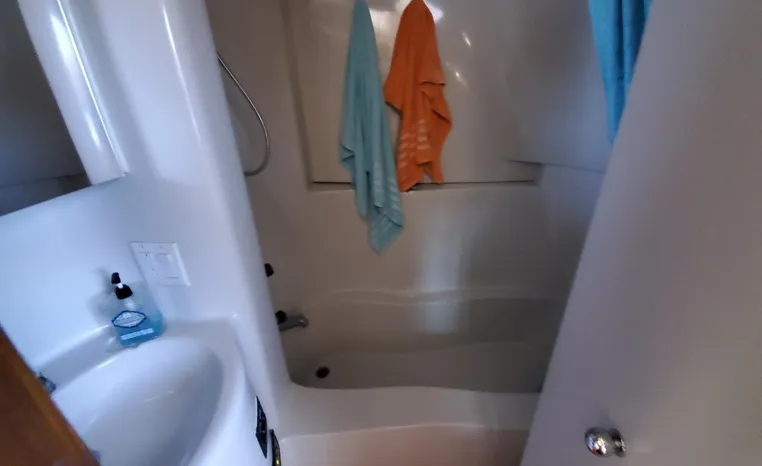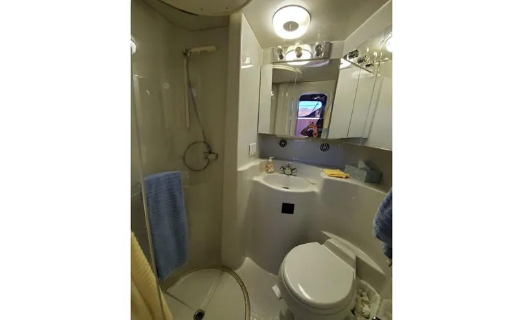 This yacht has been meticulously maintained and updated throughout, reflecting careful ownership and pride of care. The interior is spacious and functional, equipped with a full-size refrigerator and freezer to support longer trips and comfortable onboard living. Power is provided by twin Crusader 7.4L gasoline engines with 1,658 hours, both featuring closed-cooling systems for longevity and dependable performance. Electrical needs are supported by a Westerbeke 15kW generator with 1,358 hours, also closed cooling.