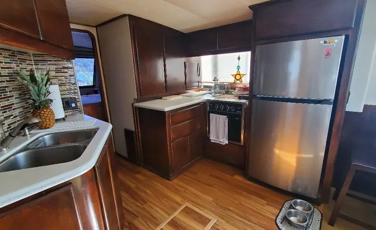 This yacht has been meticulously maintained and updated throughout, reflecting careful ownership and pride of care. The interior is spacious and functional, equipped with a full-size refrigerator and freezer to support longer trips and comfortable onboard living. Power is provided by twin Crusader 7.4L gasoline engines with 1,658 hours, both featuring closed-cooling systems for longevity and dependable performance. Electrical needs are supported by a Westerbeke 15kW generator with 1,358 hours, also closed cooling.