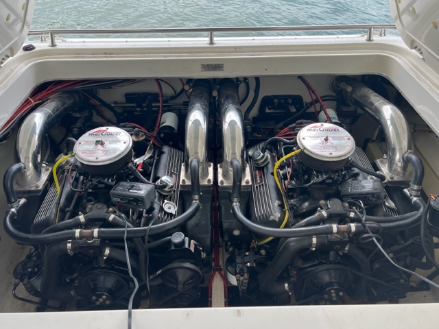 Freshwater 2 owner 1992 35 Lightning with only 230 Original hours on her Twin Mercury Performance 454 Big Blocks (425 hp each) with Bravo one drives. Boat has been lift kept under cover its entire life and is in exceptional condition for its age. Additional Features include, Twin Electric Bolsters, Updated helm with Livorsi Gauges, Aft Bench Seat, Electric Sun Pad, Swim Platform with ladder, Snap in Cockpit Carpet, Fusion Stereo, Tinted Windshield, Forward Cabin Berth with privacy curtains, Cabin Wet bar, U-shaped Bench Cabin Seating, Head and much, more..........$52995.00 OBO, NO TRAILER!!!! But can help assist in getting you one if needed!