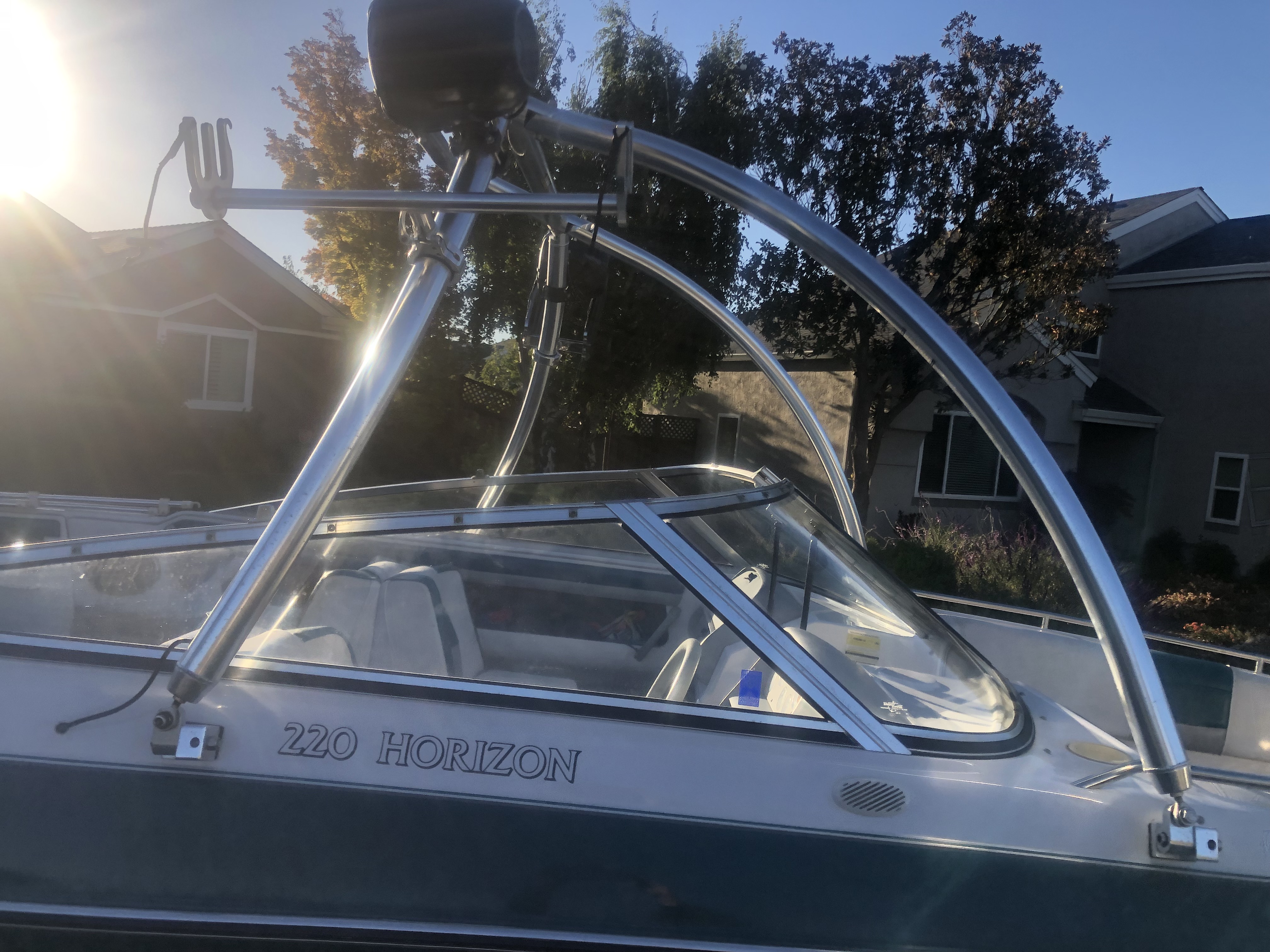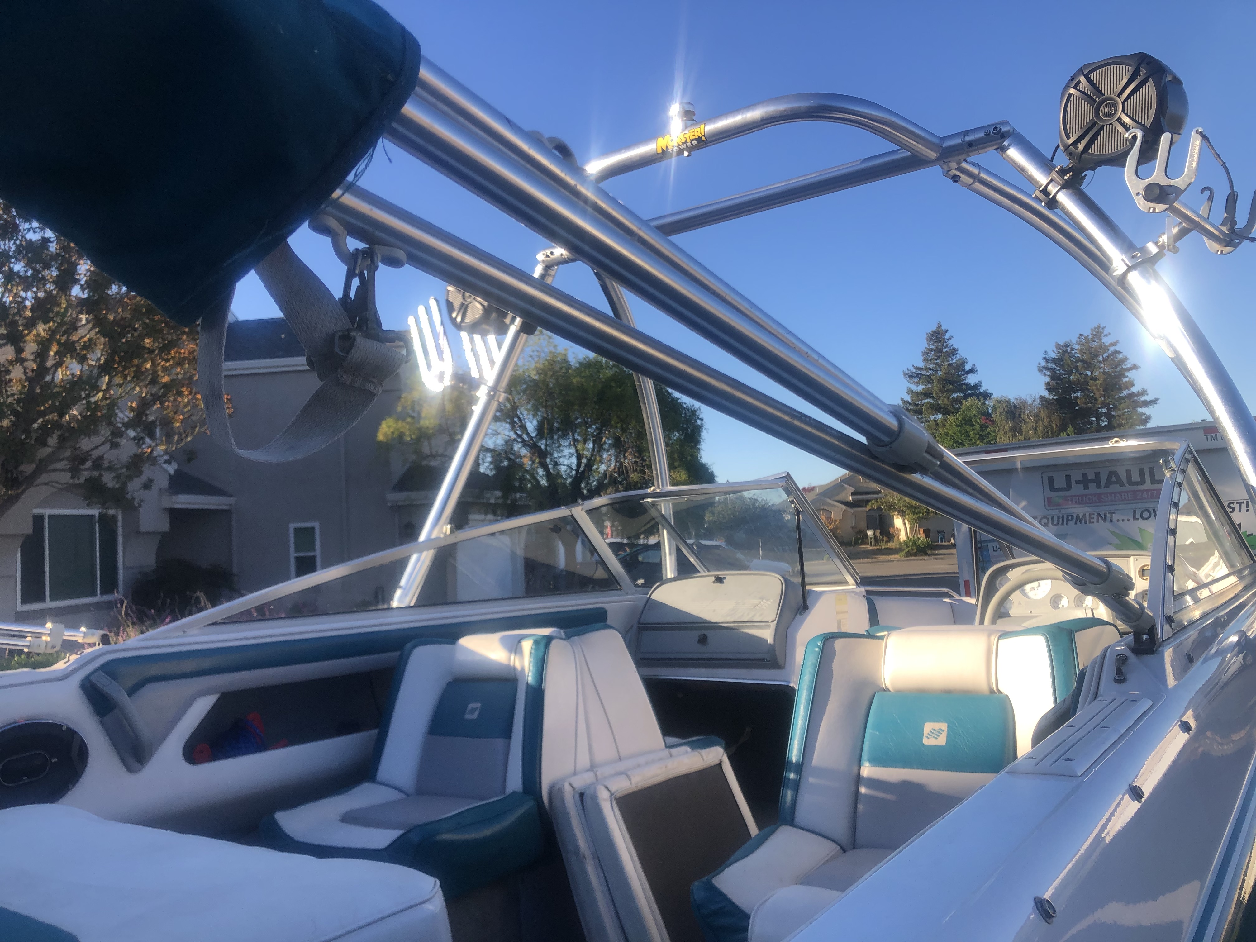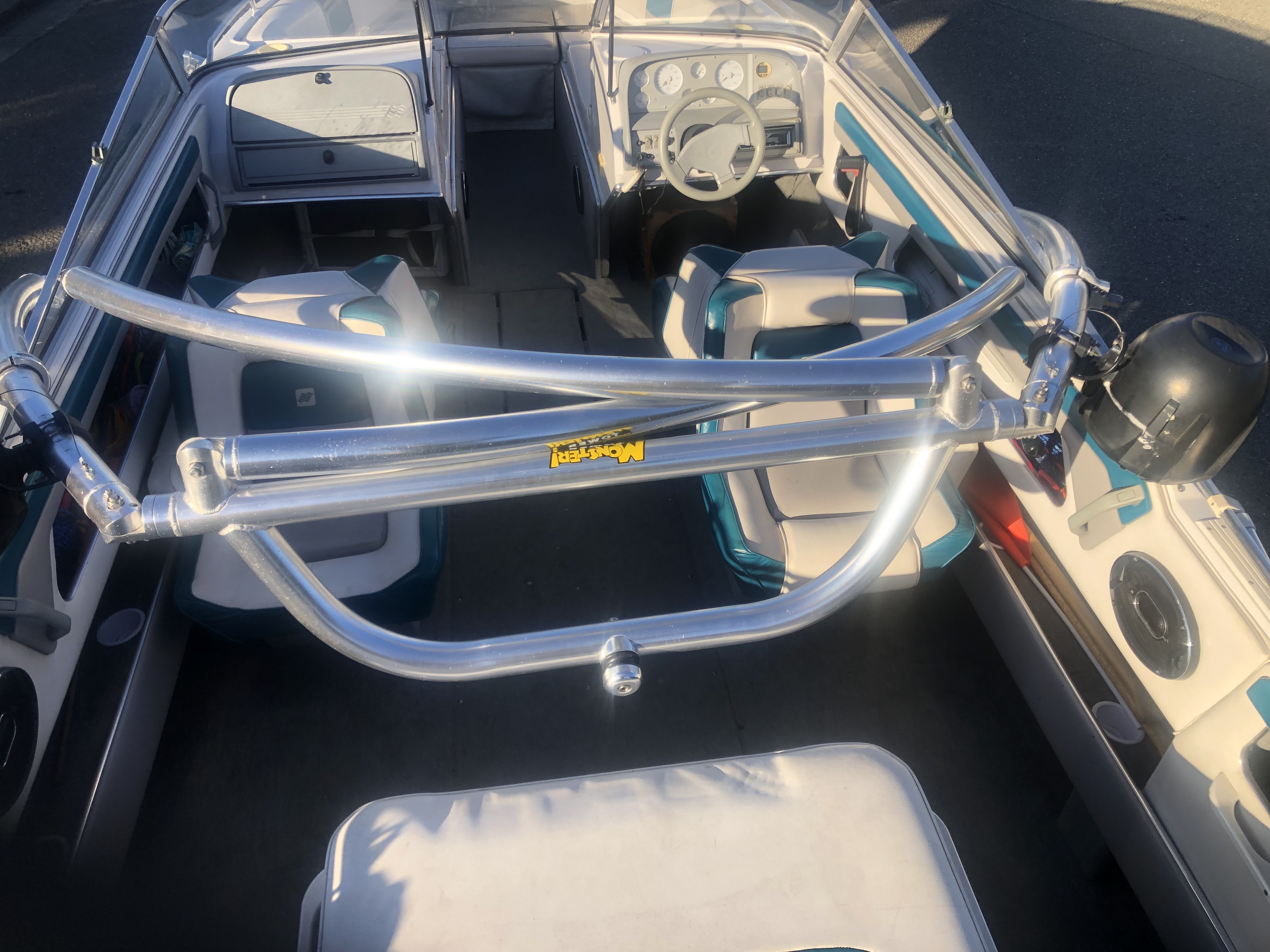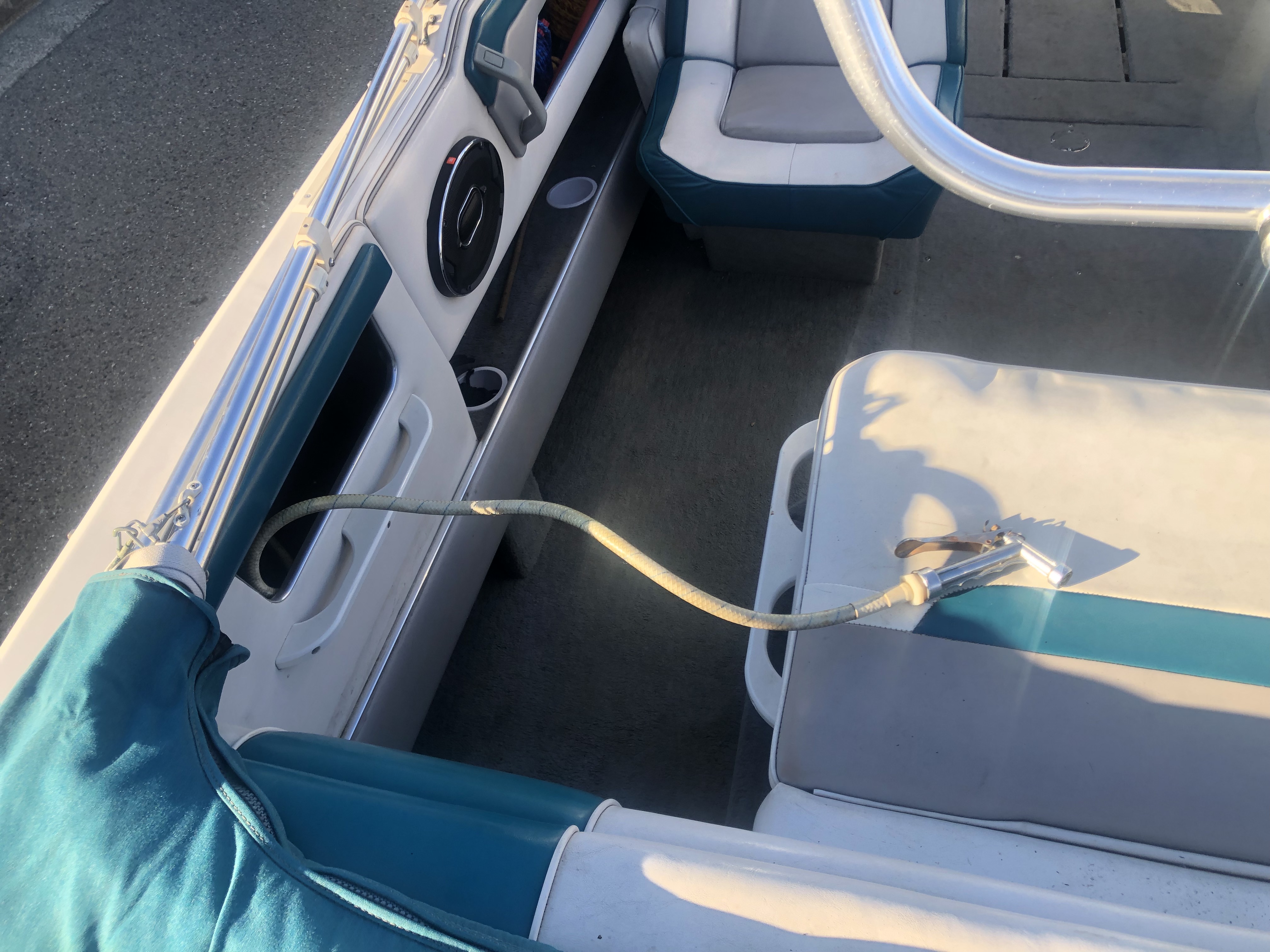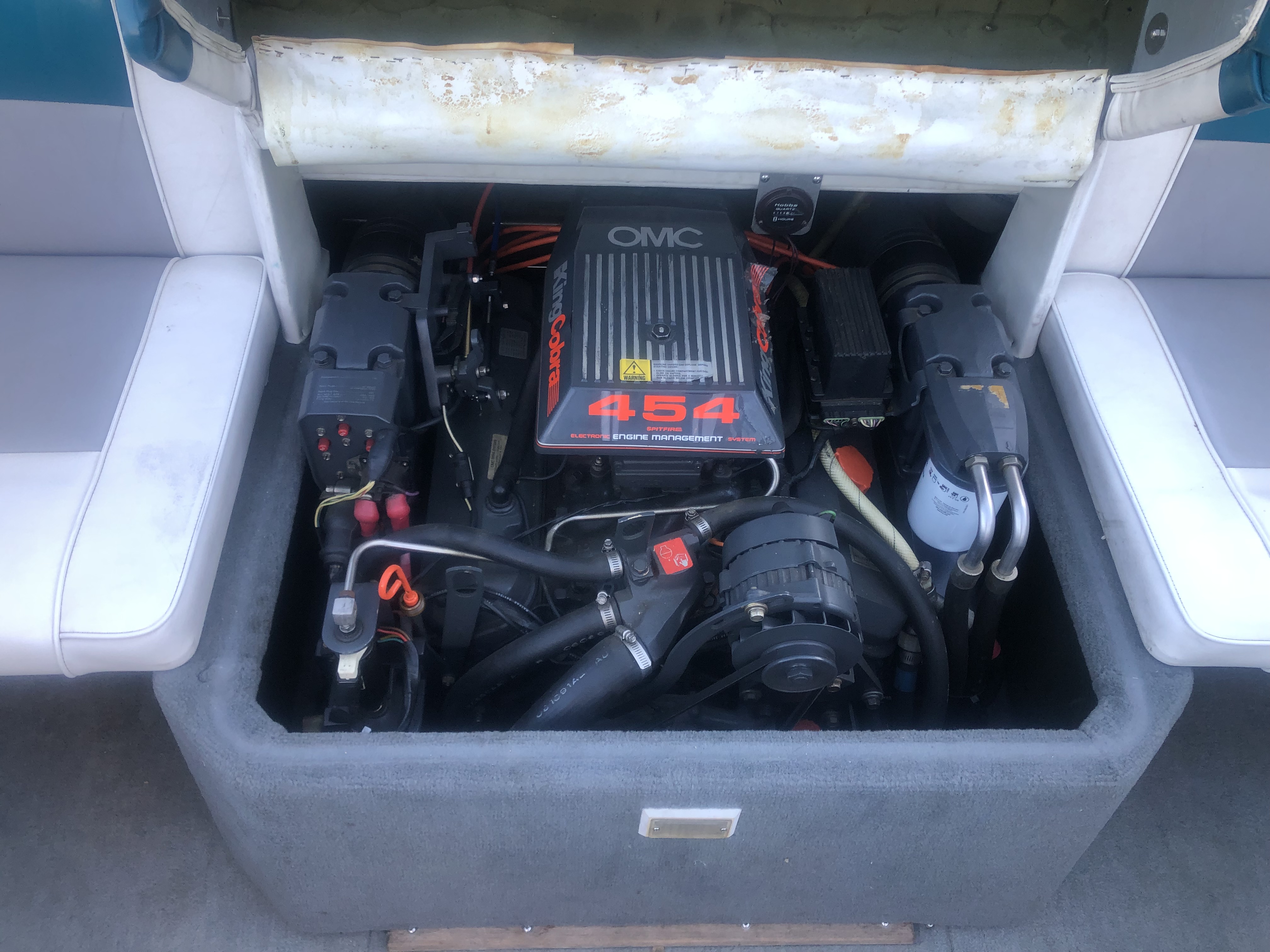 Beautiful boat in original condition. This boat has been with us for 21 years and has never let me down. Super dependable ski and wakeboard boat. It's a good sized boat so it throws up a good wake for wakeboarding. Serviced annually and winterized anuualy with all receipts. OMC 454 with King Cobra outdrive. This outdrive is known for being a tank the strongest outdrive out there. Stored in enclosed and covered area for the whole time I've had it. This boat goes out for wakwboarding and skiing every year so you can see how well it's been taken care of.........it has the original apholstery and carpet and both are in great condition. 6 speaker system with a 10" sub and amp.50 Gallon tank. Pleanty of power great boat.