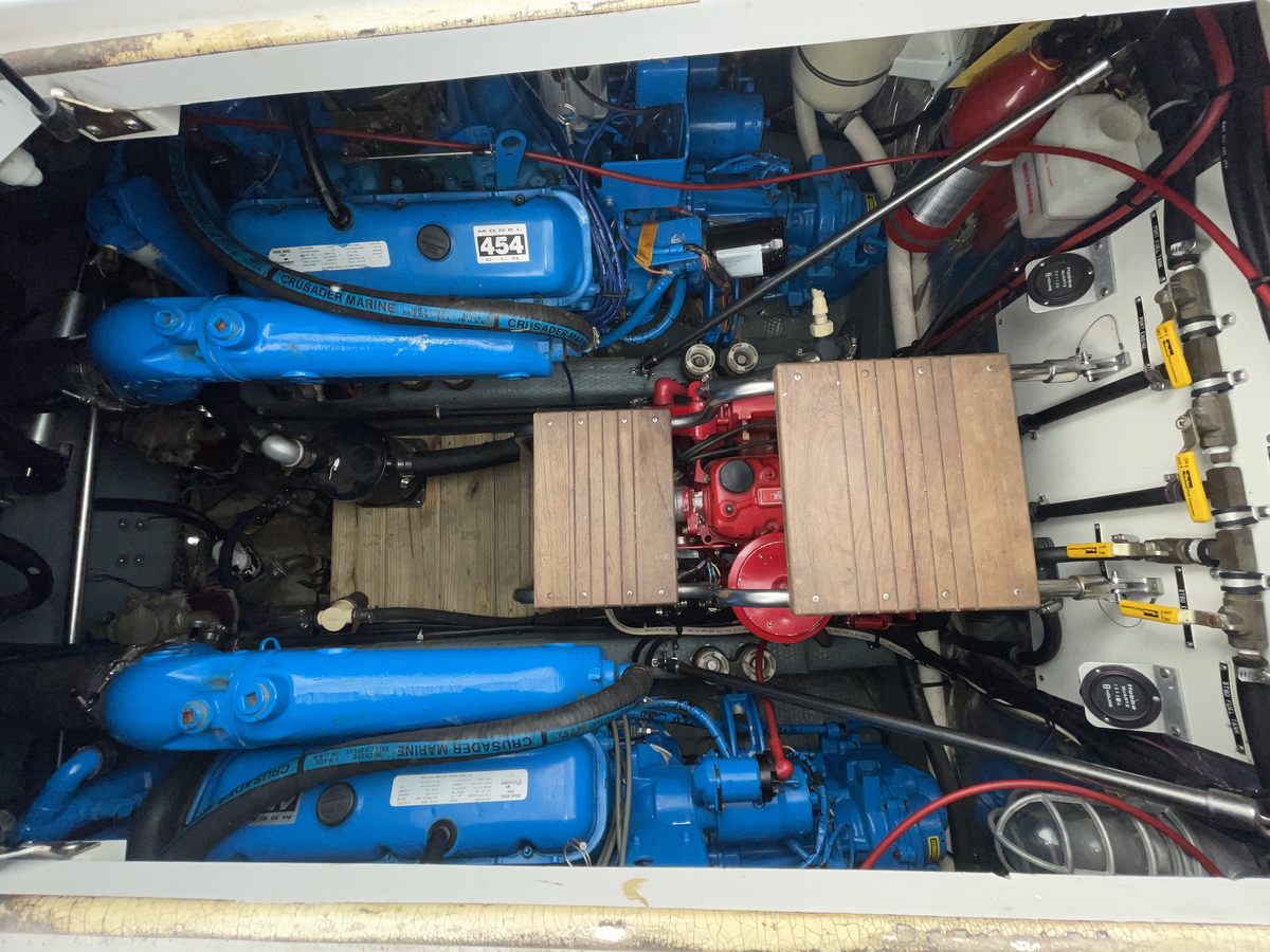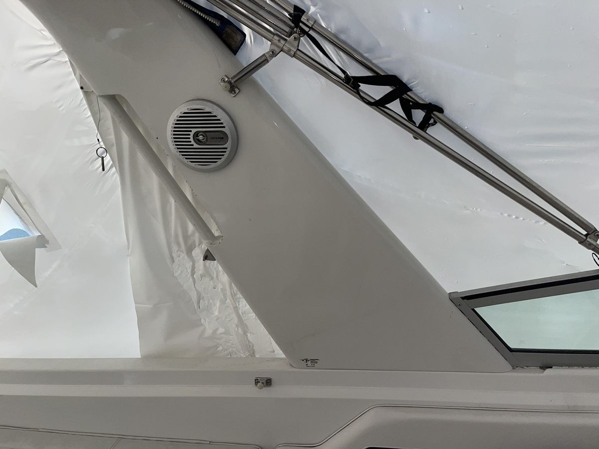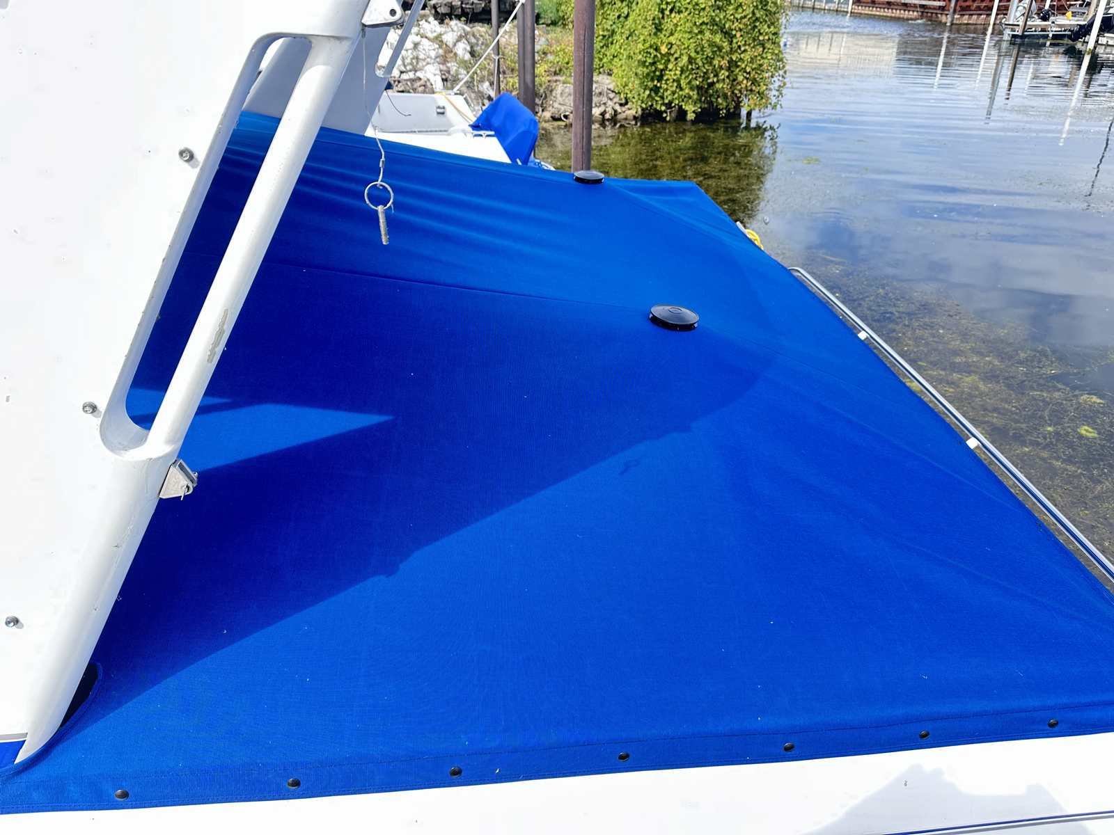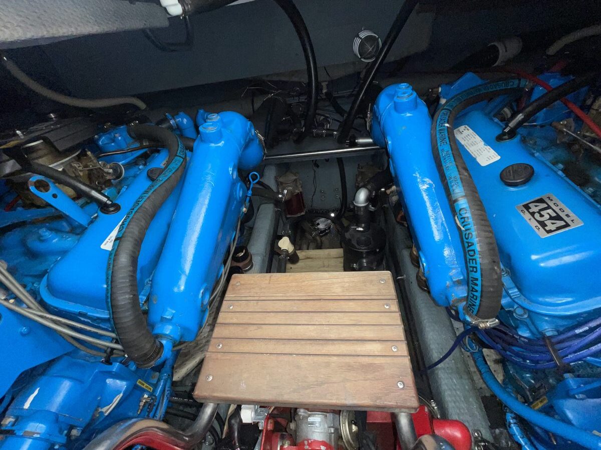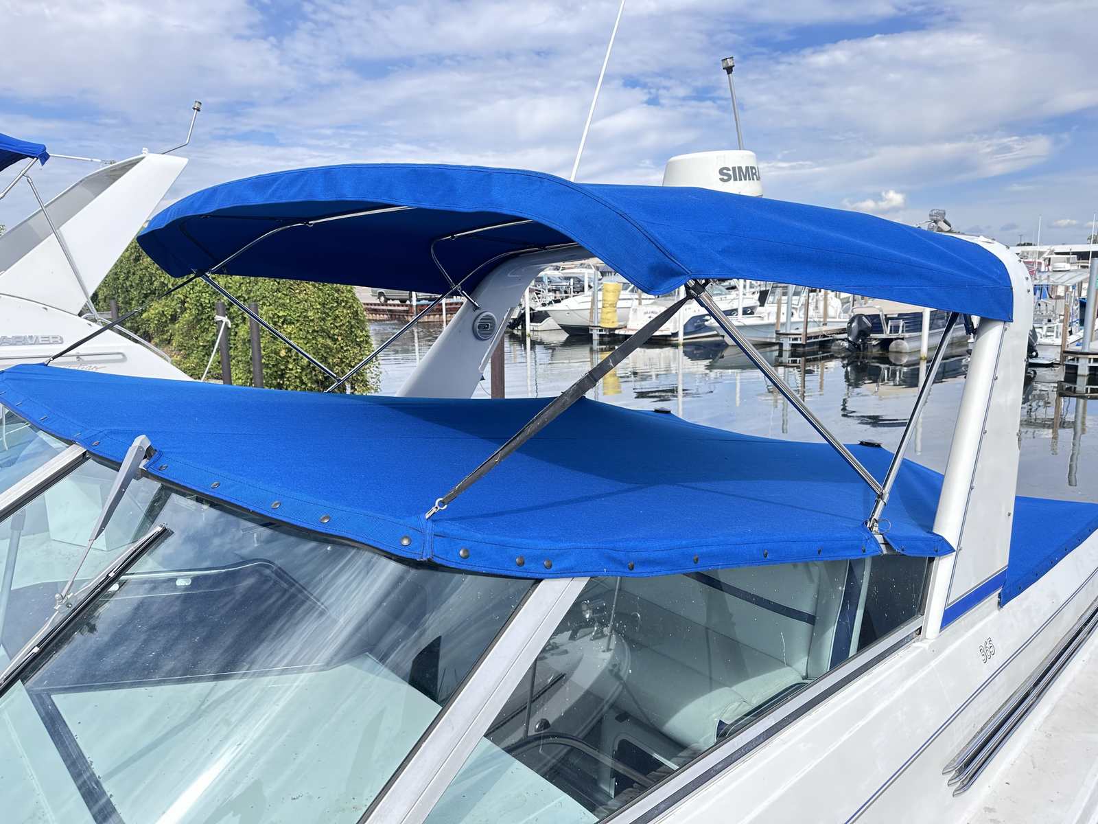 Freshwater 365 Express with New Cockpit Cover and Bimini installed in Sept. 2025. She is powered with Twin 454 Crusader Engines, V-Drives, Westerbeke 5.0kw Generator, Newer Simrad, Radar/GPS, Autopilot, Electric Windlass, Hot Tub under V-Berth, Bottom stripped-sanded-painted before launch this season, Surveyed in 2023 with no structural issues/stringers/bulkheads. No A/C in the cabin but wired for it. Please call or email for viewing, she is on land and wrapped with a door to get on board.