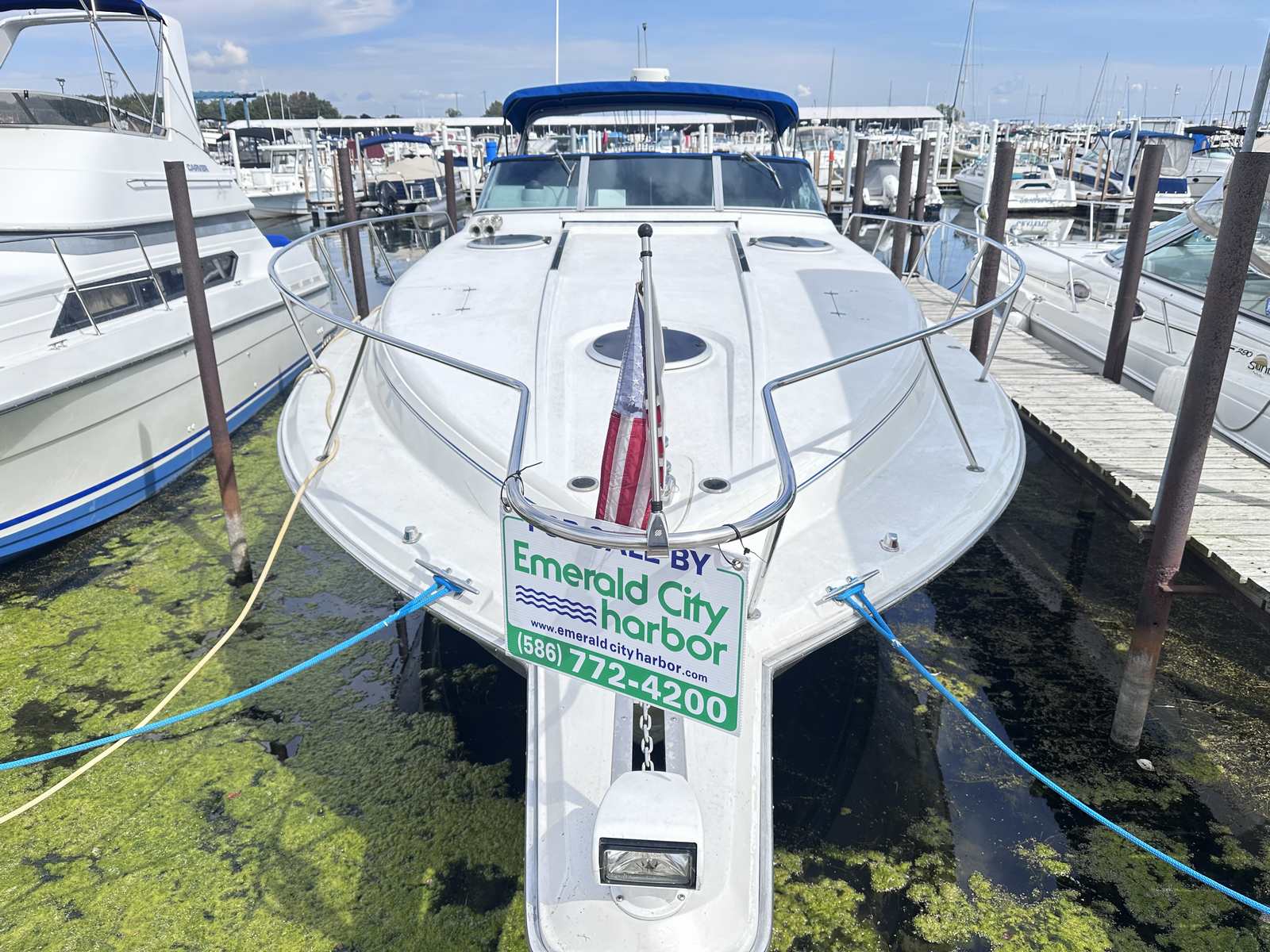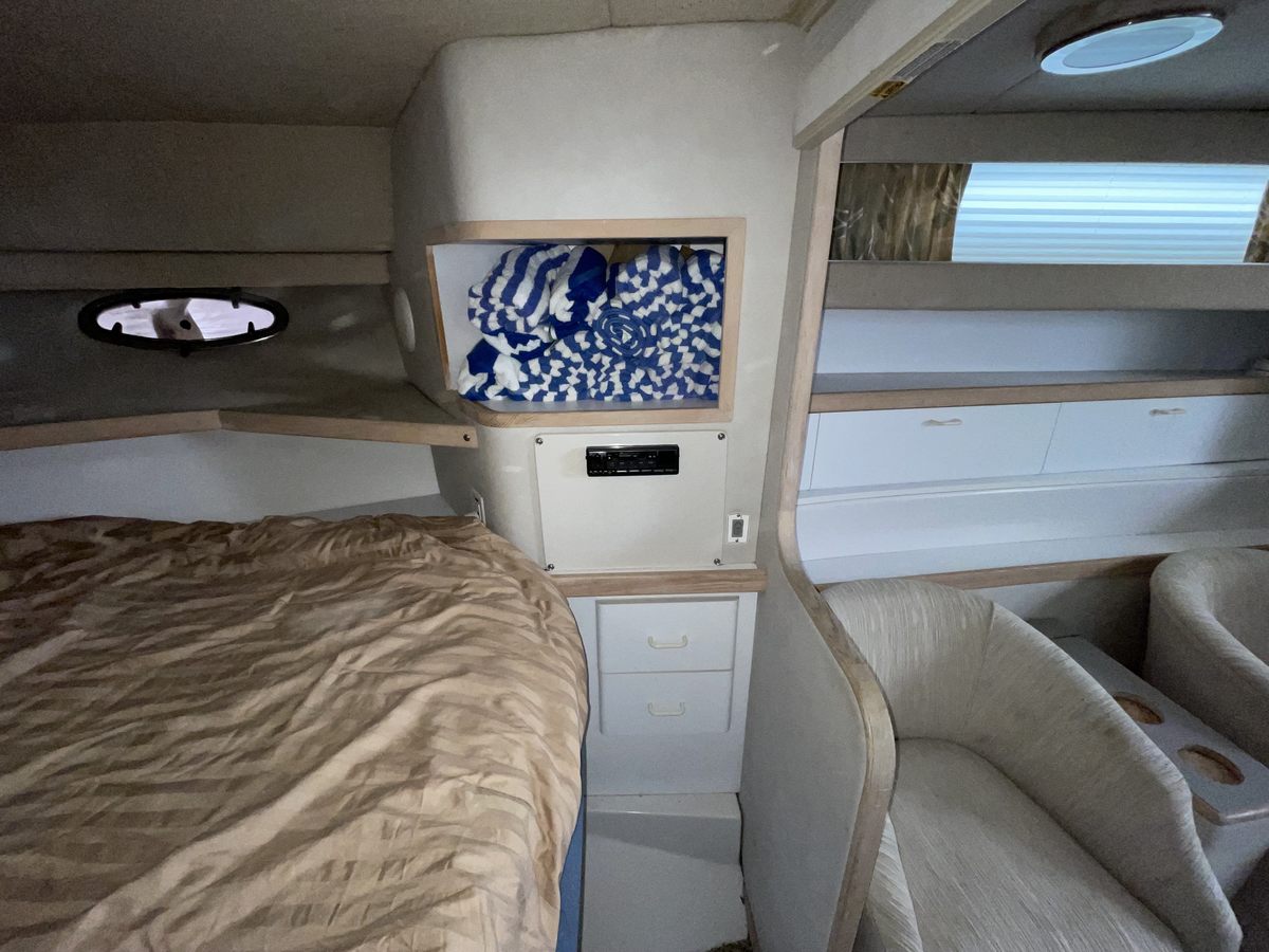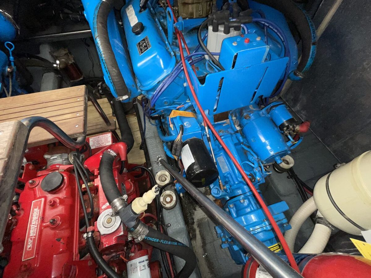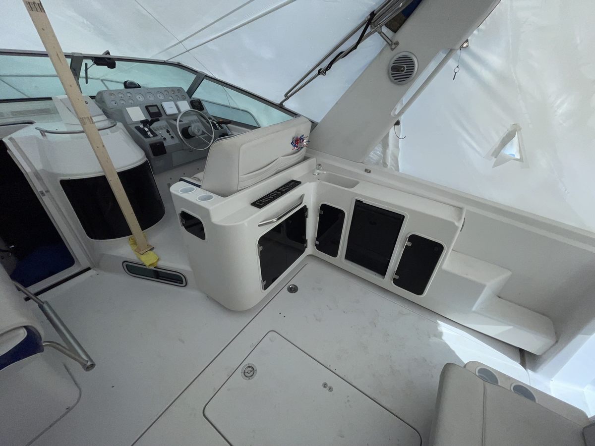 Freshwater 365 Express with New Cockpit Cover and Bimini installed in Sept. 2025. She is powered with Twin 454 Crusader Engines, V-Drives, Westerbeke 5.0kw Generator, Newer Simrad, Radar/GPS, Autopilot, Electric Windlass, Hot Tub under V-Berth, Bottom stripped-sanded-painted before launch this season, Surveyed in 2023 with no structural issues/stringers/bulkheads. No A/C in the cabin but wired for it. Please call or email for viewing, she is on land and wrapped with a door to get on board.