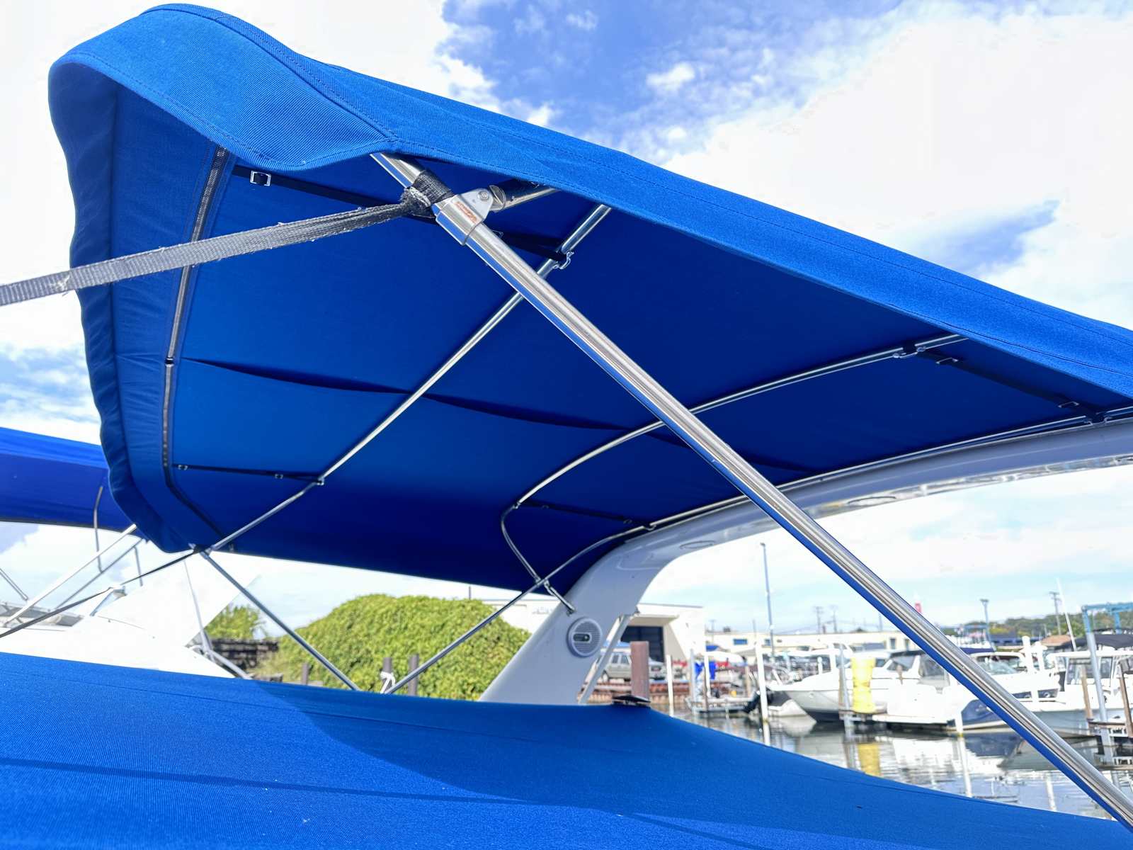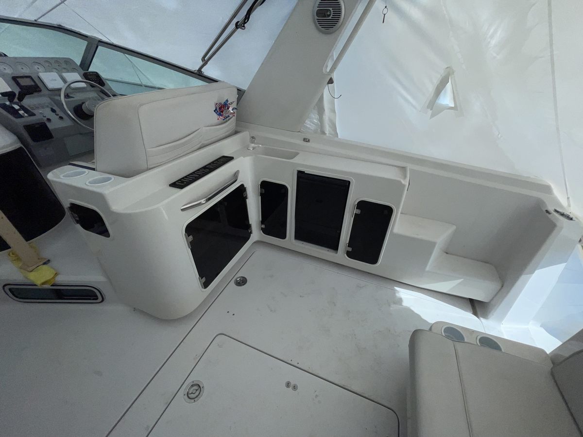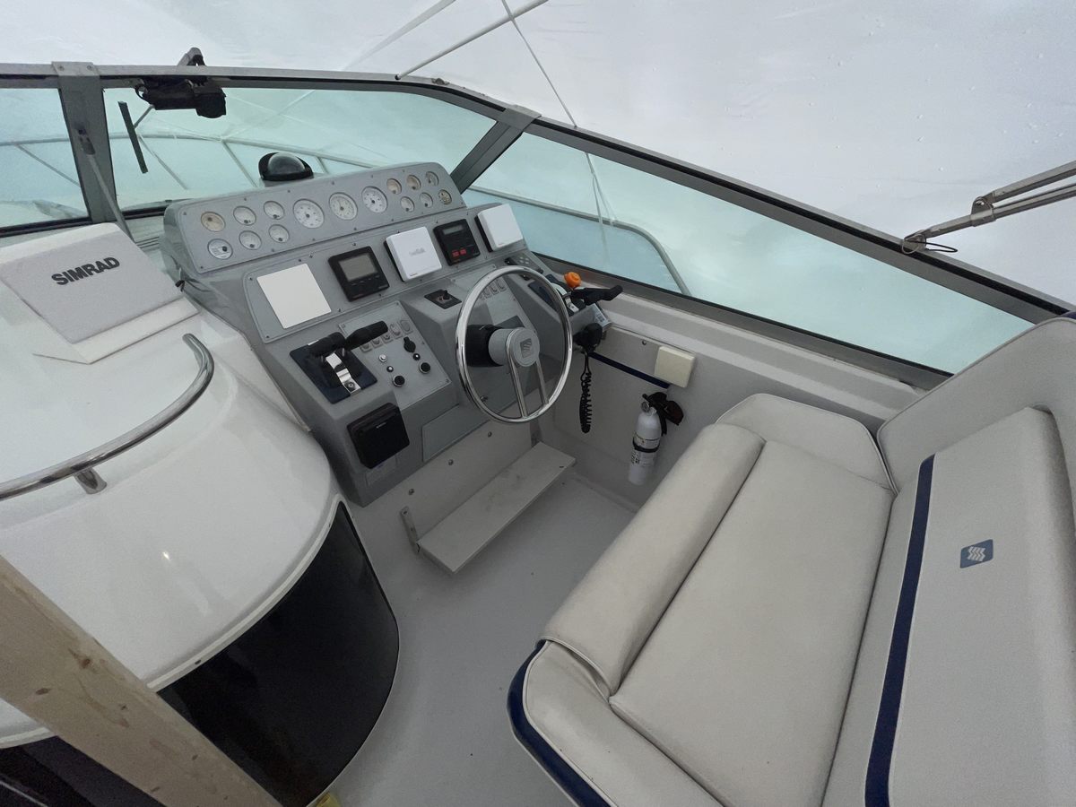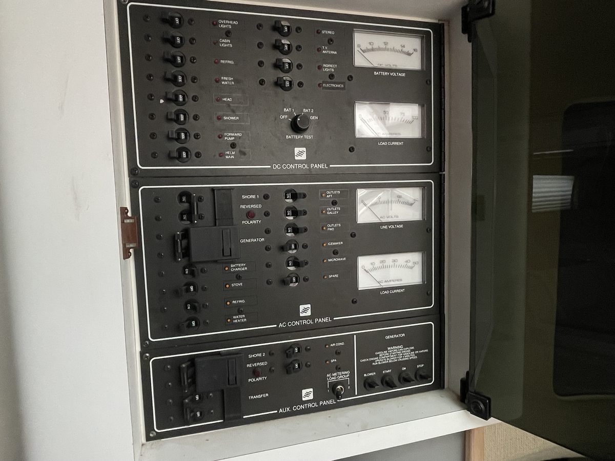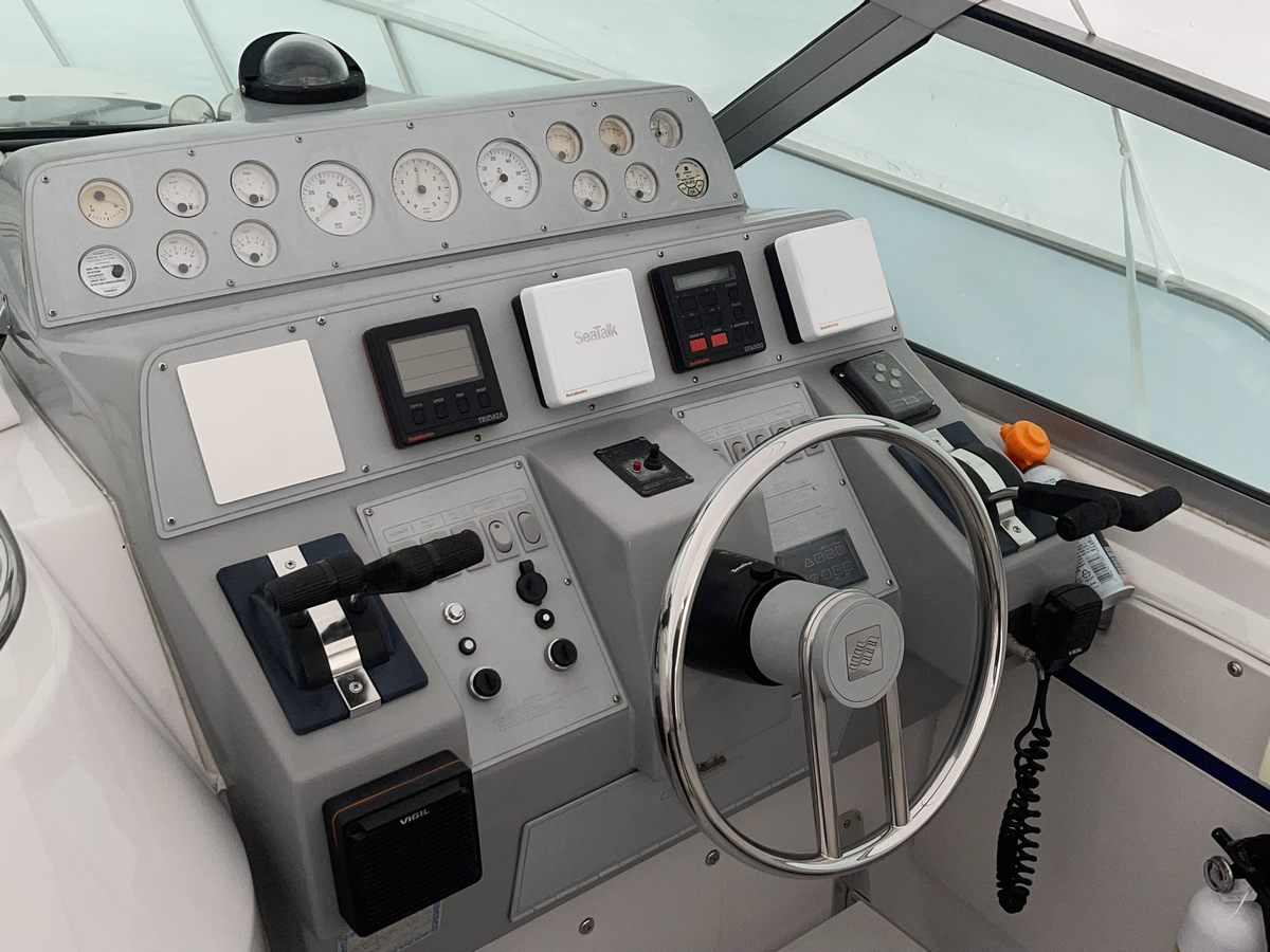 Freshwater 365 Express with New Cockpit Cover and Bimini installed in Sept. 2025. She is powered with Twin 454 Crusader Engines, V-Drives, Westerbeke 5.0kw Generator, Newer Simrad, Radar/GPS, Autopilot, Electric Windlass, Hot Tub under V-Berth, Bottom stripped-sanded-painted before launch this season, Surveyed in 2023 with no structural issues/stringers/bulkheads. No A/C in the cabin but wired for it. Please call or email for viewing, she is on land and wrapped with a door to get on board.