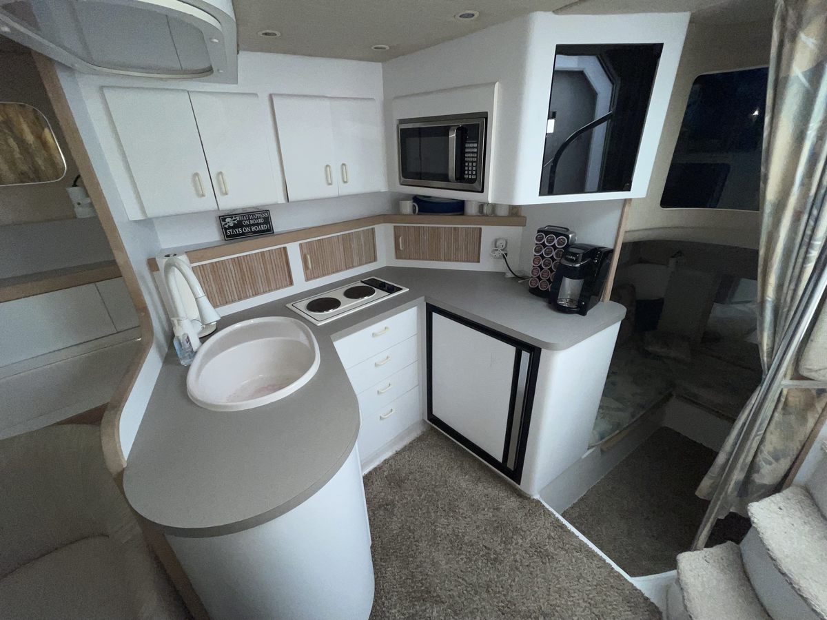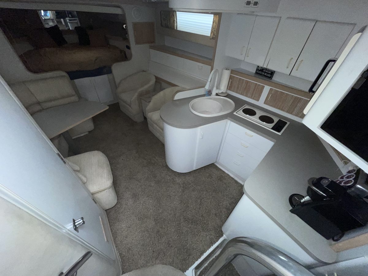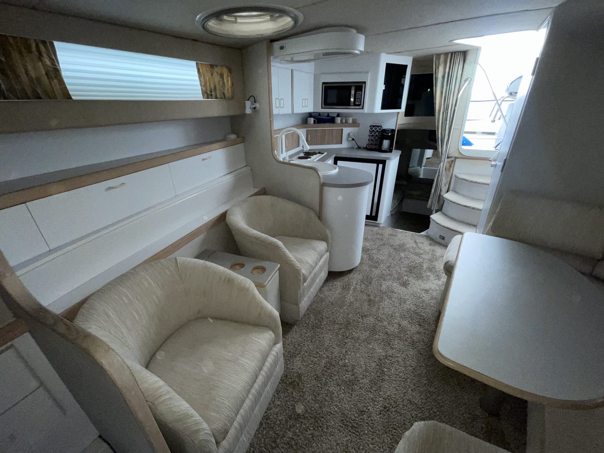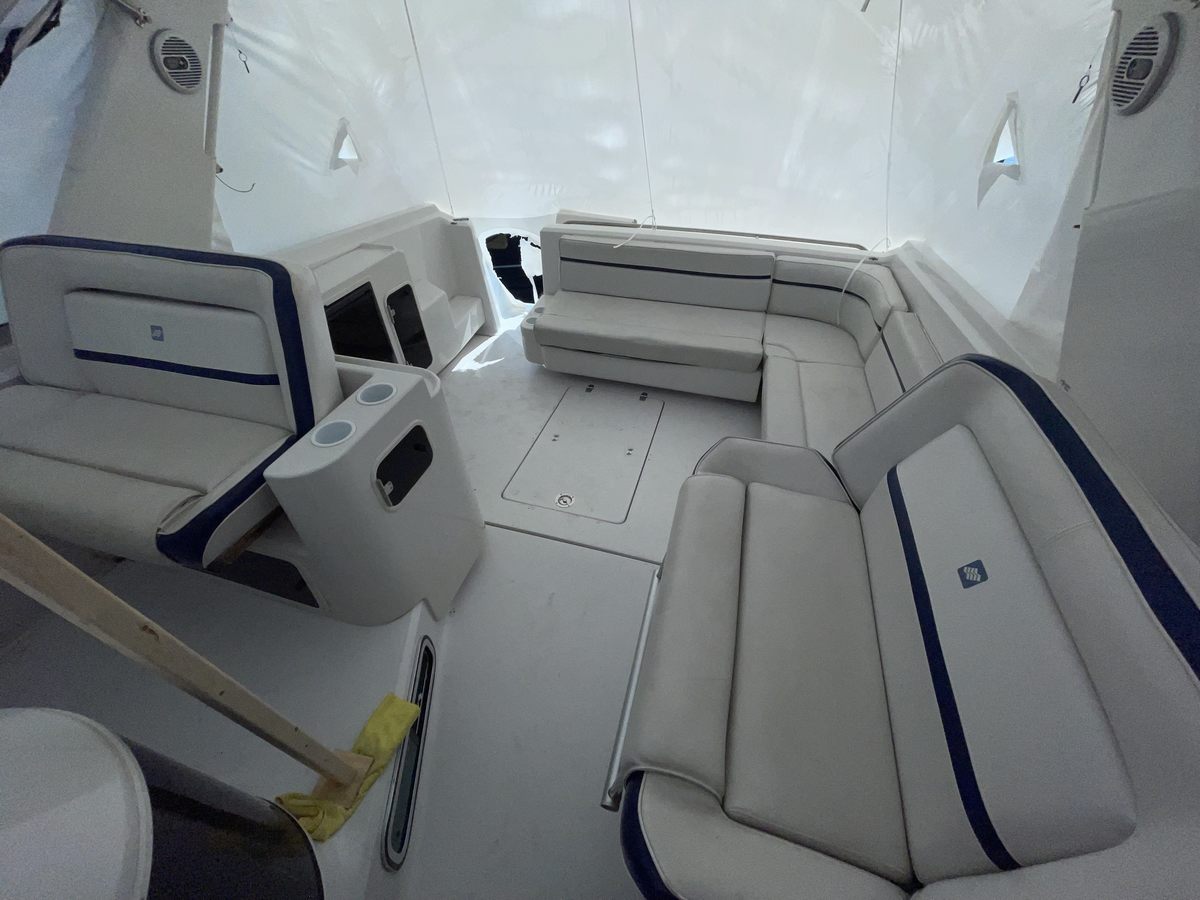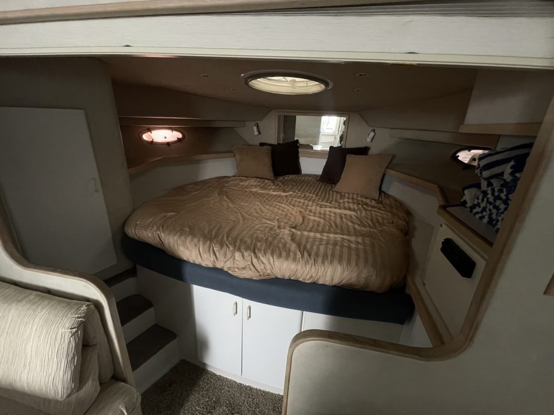 Freshwater 365 Express with New Cockpit Cover and Bimini installed in Sept. 2025. She is powered with Twin 454 Crusader Engines, V-Drives, Westerbeke 5.0kw Generator, Newer Simrad, Radar/GPS, Autopilot, Electric Windlass, Hot Tub under V-Berth, Bottom stripped-sanded-painted before launch this season, Surveyed in 2023 with no structural issues/stringers/bulkheads. No A/C in the cabin but wired for it. Please call or email for viewing, she is on land and wrapped with a door to get on board.