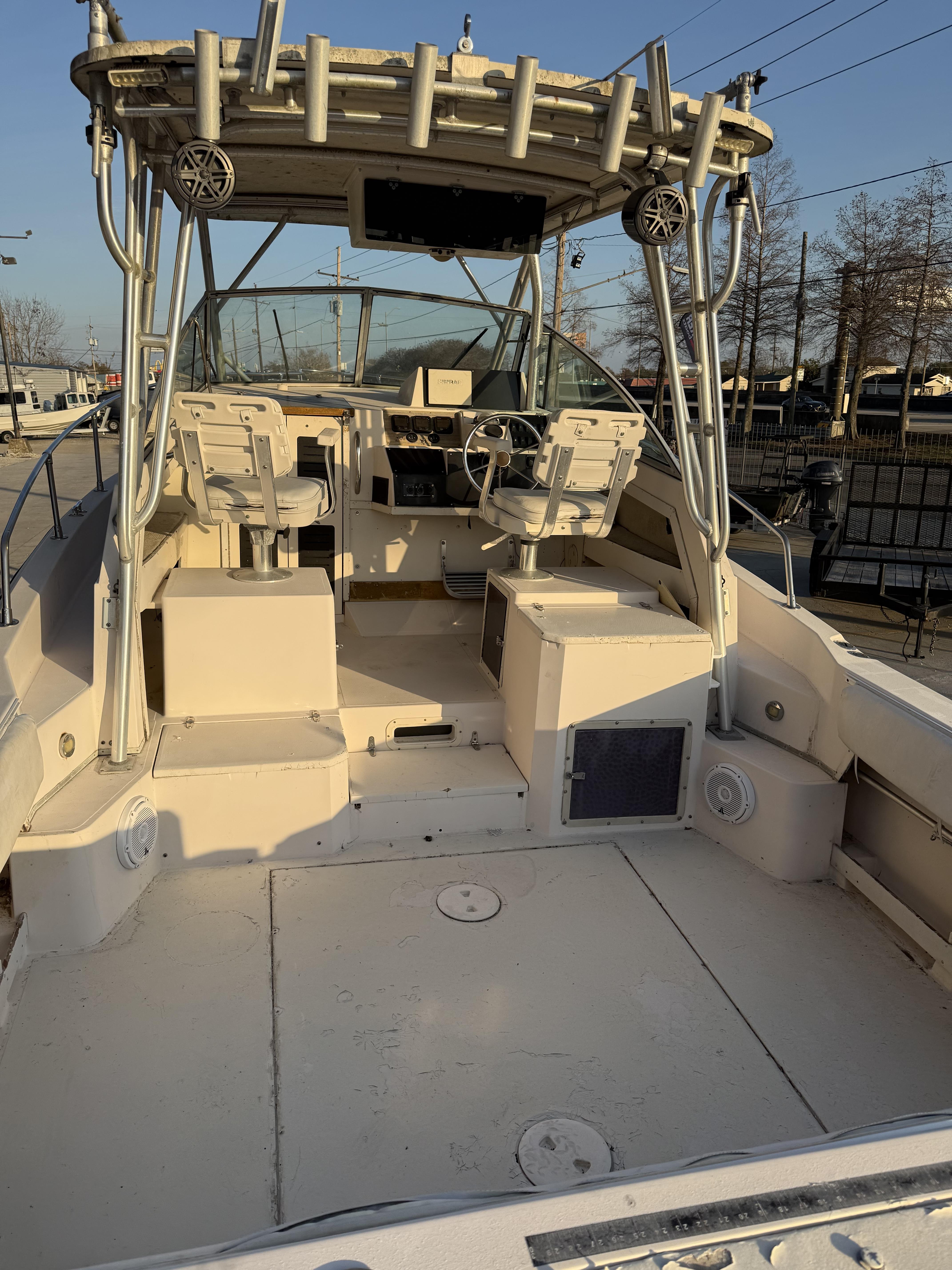 Fishing Amenities: Includes a rigging station, livewell, insulated fish boxes, cockpit toe rails, and numerous rod holders.