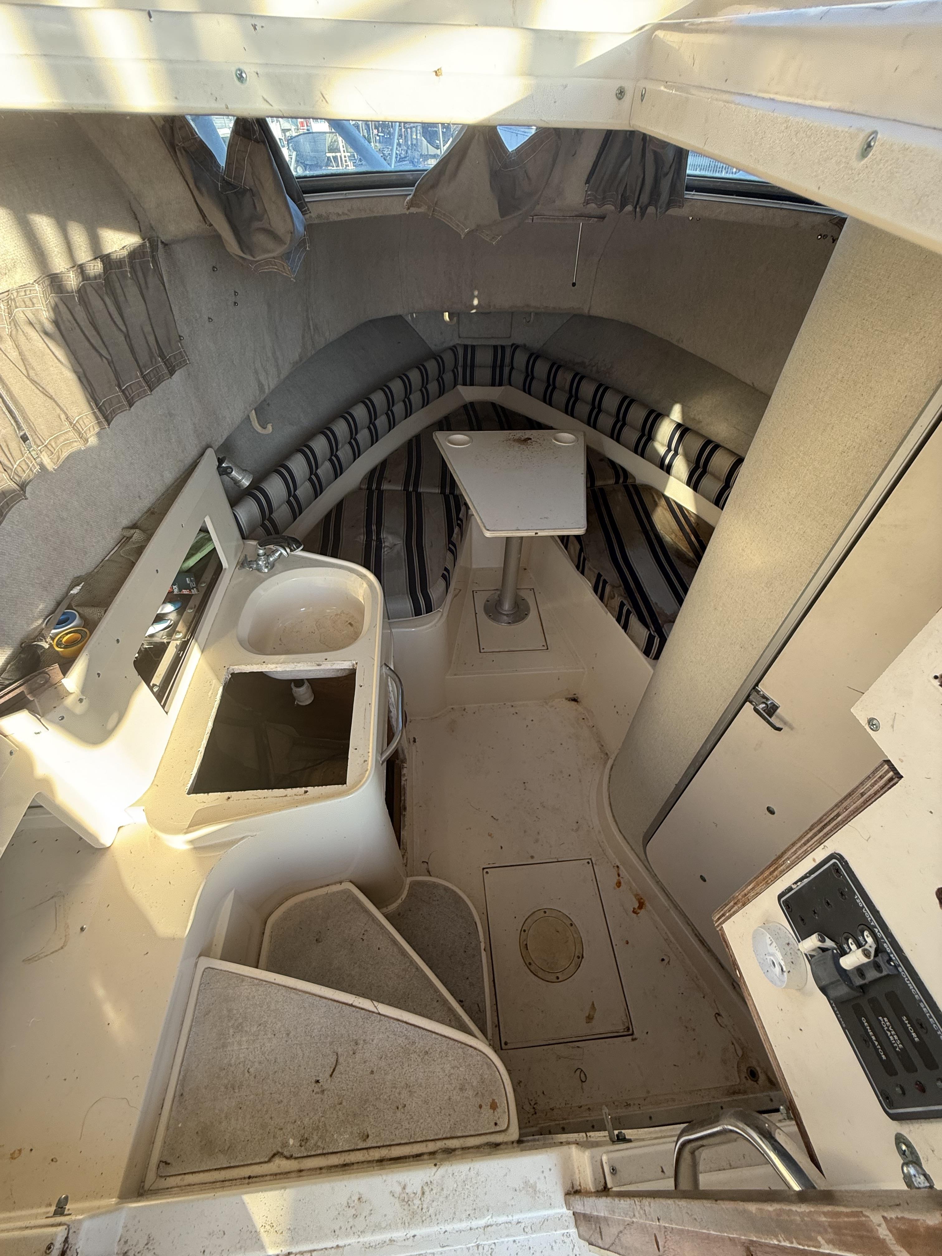 Versatile Design: Ideal for serious saltwater fishing or family cruising, featuring a self-bailing cockpit, large fish boxes, and comfortable cabin accommodations.