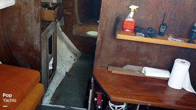 Her cabin is a simple open layout optimal for single-handed sailing but could be upgraded. The boat has competed for rigging and sails and a reserve an unfinished 50-foot mast section. Boom is spruce and is functional but rough-looking.