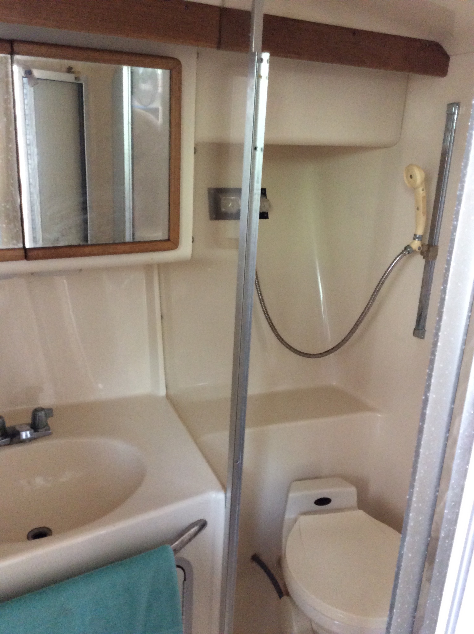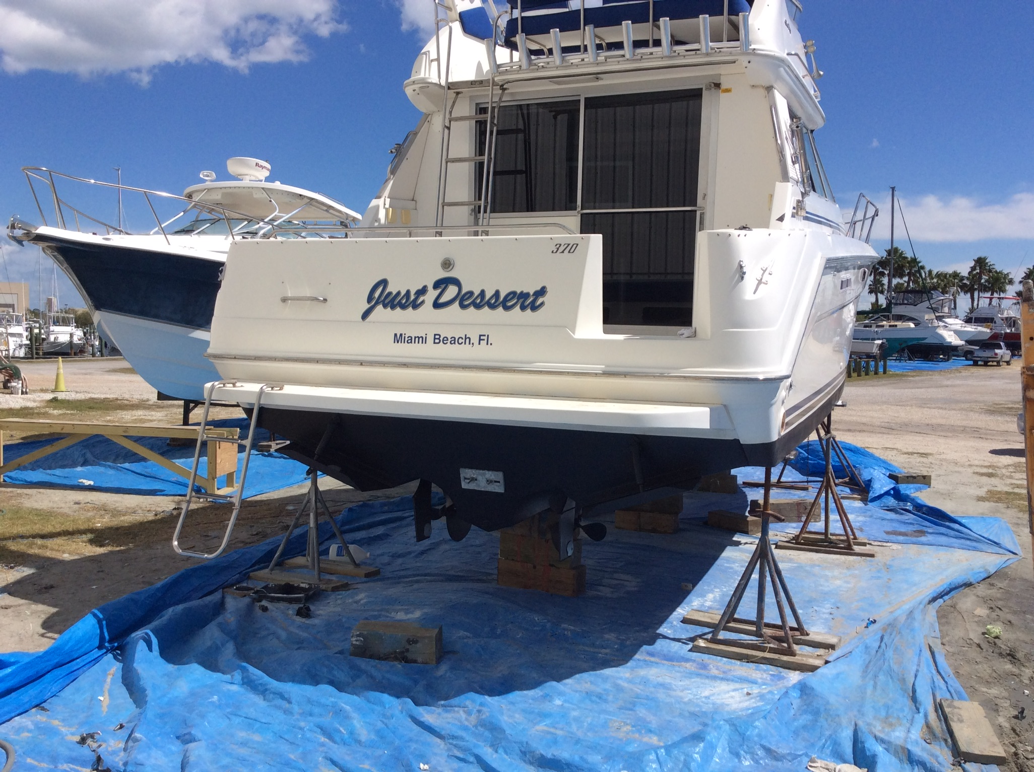Polished profesionally , Bottom just painted all running gear cleaned, New stripes and decals New windows, new canvas 2 TV's microwave stove, refrigerator ice maker , 2 A/C units