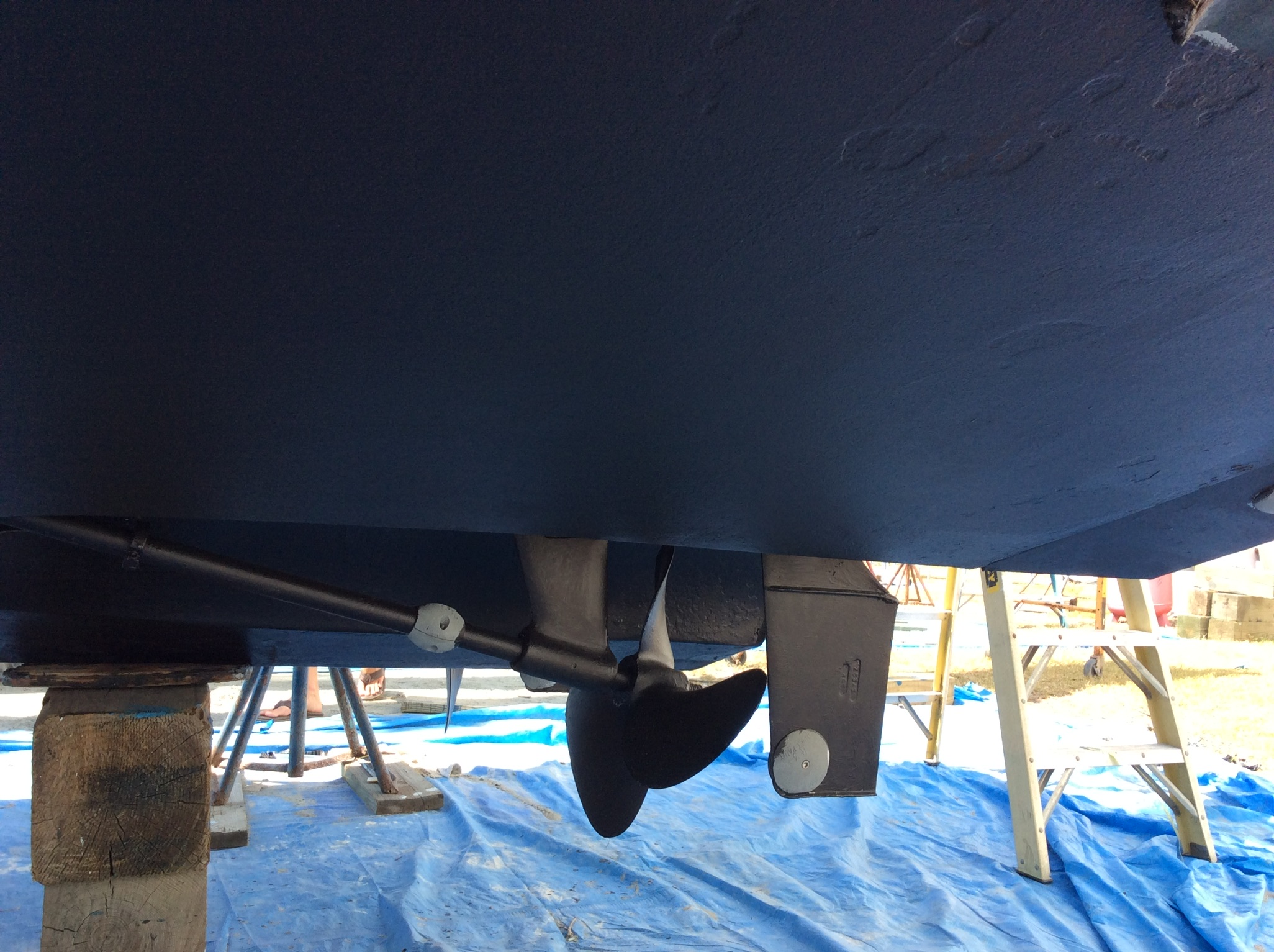 New packing runs very quite. Prop size Diameter x Pitch 18 x 21 3 BC Bronze Gear reduction ratio 2.00:1. RPM @ cruise 4000 Speed @ cruise 25-29 knots . Generator -Collar , Outriggers , Exterior just