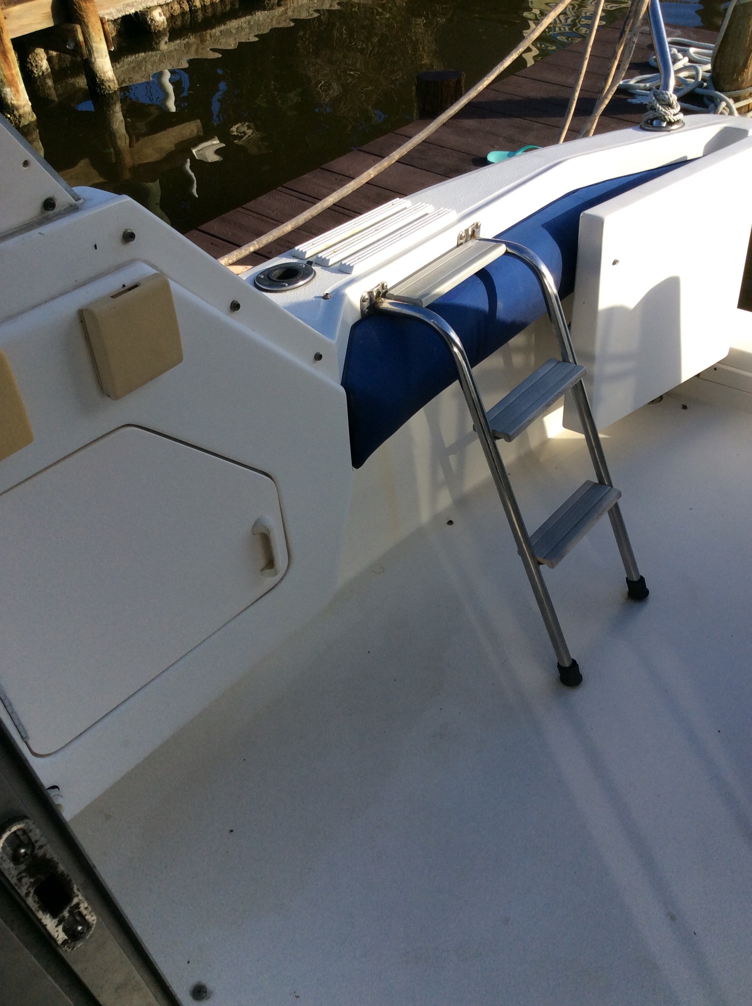 Dry Weight 14,500 lbs. water cap. 70 gal. Fuel Cap. 250 Gal.Overall height from waterline 135"V 183 SP