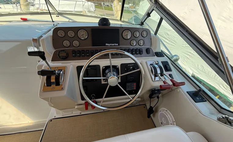Freshwater / Great Lakes boat since new this vessel features Twin Mecruiser 454-cid 350-hp Gas Engine's with 1354 original hours. Notable features include but are not limited to the following: Air-Conditioning & Heat, Westerbeke Generator w/ 126 hours, Head (Electric Flush) w/Vanity/Sink/Shower, Raymarine Electronics w/ Auto Pilot and Closed Array Radar, Canvas Package (Full Camper-Top Enclosure), Snap-in Snap-out Cockpit Carpeting, Updated Soft Goods in Cockpit, Custom Varnished Cockpit Tables (x2), Bow Thruster, Premium Fusion Sound System w/ Bluetooth and JL Audio Speakers, Extended Swim Platform w/Boarding Ladder, and MUCH more!