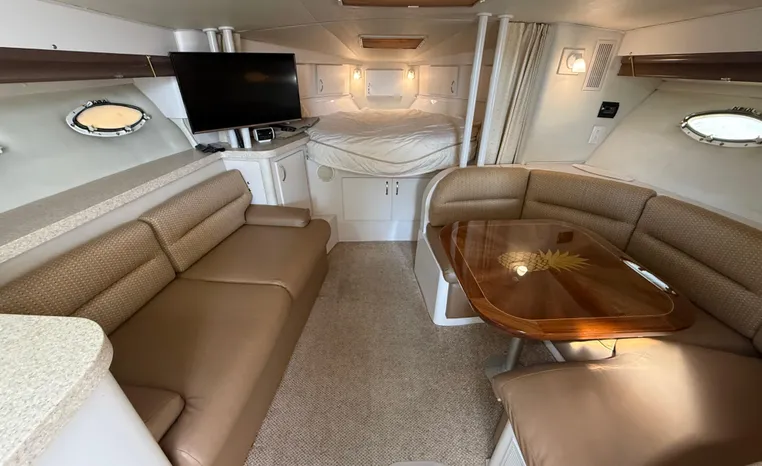 Freshwater / Great Lakes boat since new this vessel features Twin Mecruiser 454-cid 350-hp Gas Engine's with 1354 original hours. Notable features include but are not limited to the following: Air-Conditioning & Heat, Westerbeke Generator w/ 126 hours, Head (Electric Flush) w/Vanity/Sink/Shower, Raymarine Electronics w/ Auto Pilot and Closed Array Radar, Canvas Package (Full Camper-Top Enclosure), Snap-in Snap-out Cockpit Carpeting, Updated Soft Goods in Cockpit, Custom Varnished Cockpit Tables (x2), Bow Thruster, Premium Fusion Sound System w/ Bluetooth and JL Audio Speakers, Extended Swim Platform w/Boarding Ladder, and MUCH more!
