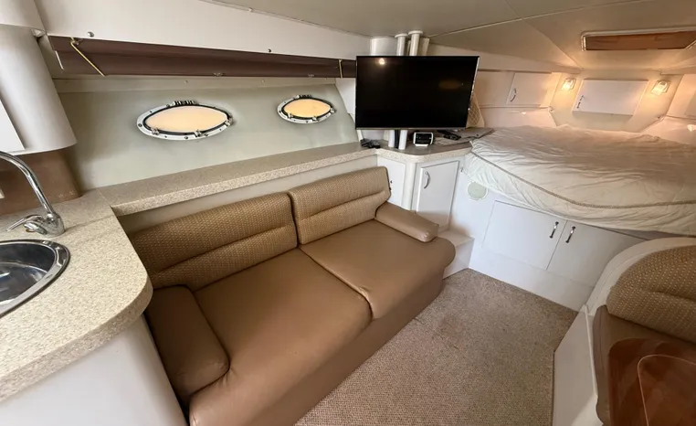 Freshwater / Great Lakes boat since new this vessel features Twin Mecruiser 454-cid 350-hp Gas Engine's with 1354 original hours. Notable features include but are not limited to the following: Air-Conditioning & Heat, Westerbeke Generator w/ 126 hours, Head (Electric Flush) w/Vanity/Sink/Shower, Raymarine Electronics w/ Auto Pilot and Closed Array Radar, Canvas Package (Full Camper-Top Enclosure), Snap-in Snap-out Cockpit Carpeting, Updated Soft Goods in Cockpit, Custom Varnished Cockpit Tables (x2), Bow Thruster, Premium Fusion Sound System w/ Bluetooth and JL Audio Speakers, Extended Swim Platform w/Boarding Ladder, and MUCH more!