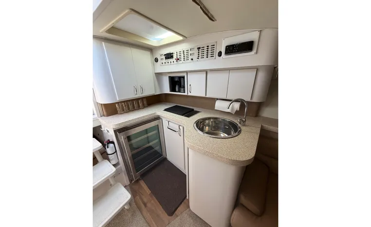 Broker Notes: This Wellcraft 3400 Grand Sport has been extensively updated and thoughtfully upgraded throughout. It features modern electronics and a refreshed dash with updated gauges for a clean, contemporary helm experience. The interior has been tastefully renovated, showcasing new countertops, a modern sink, and updated appliances that enhance both style and functionality.
