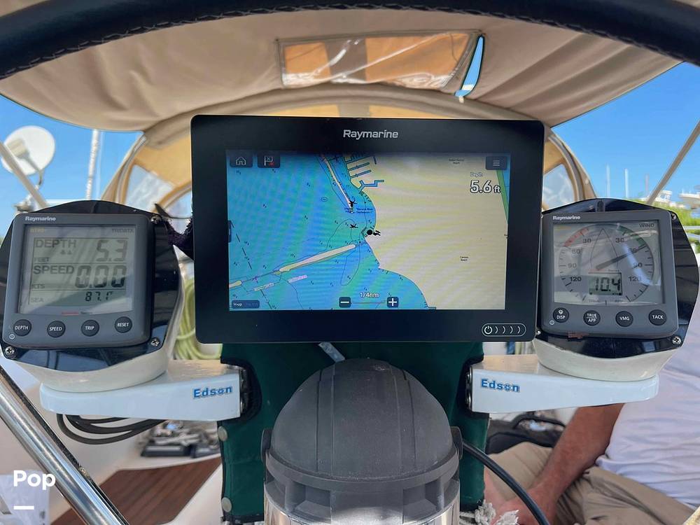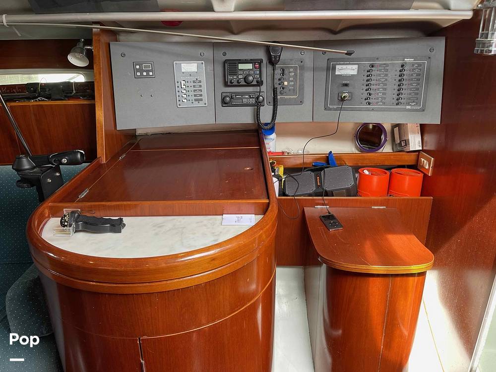 The interior offers incredibly spacious, comfortable accommodations. This First 35 has a forward cabin and an aft cabin. It features an L-shaped galley and a head with a shower. The salon has a height-adjusting table for easy meals.