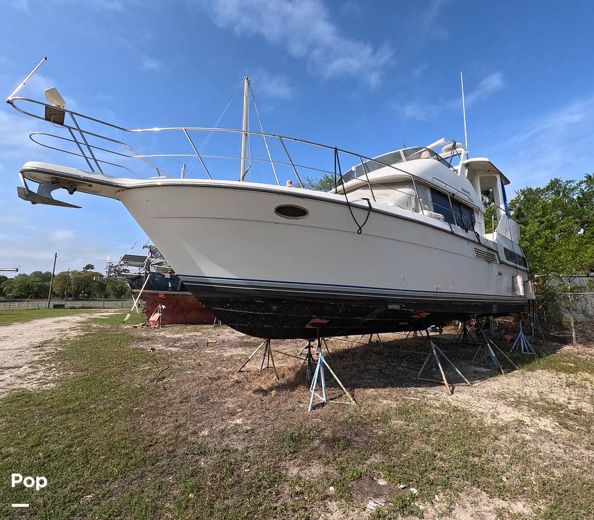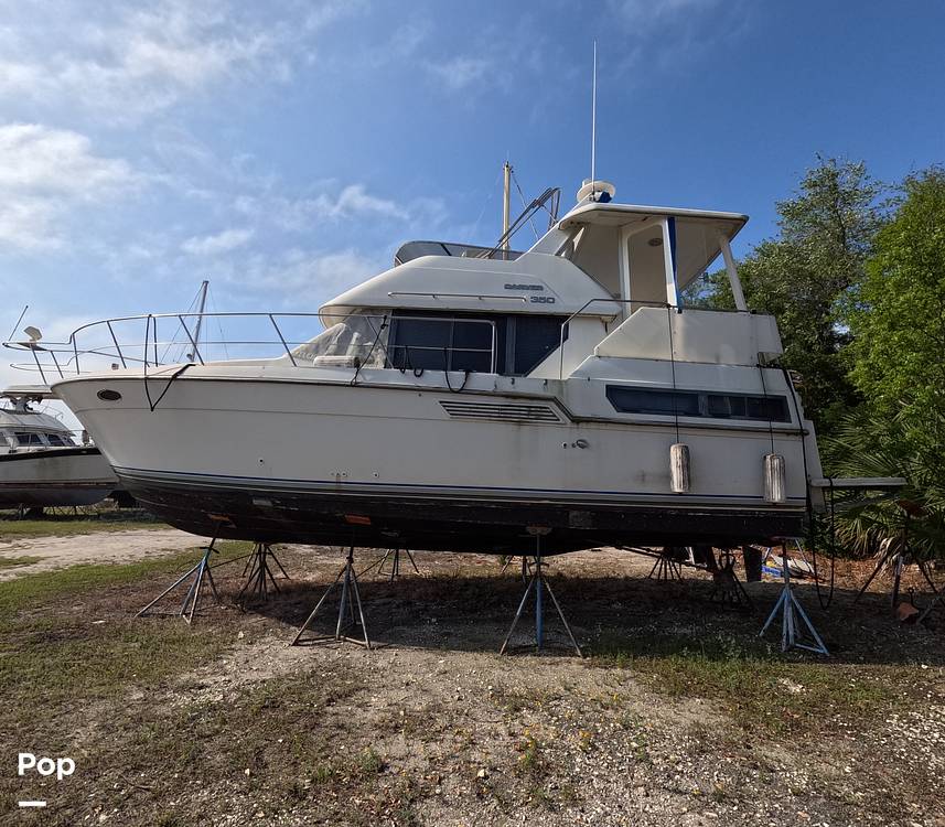 The interior features two spacious cabins and two heads, both with showers, providing ample accommodation for relaxation and privacy. Designed for entertaining, the Carver 350 can comfortably seat up to 12 guests, making it perfect for gatherings with family and friends. This used model has been well-maintained, showcasing its timeless appeal and functionality.