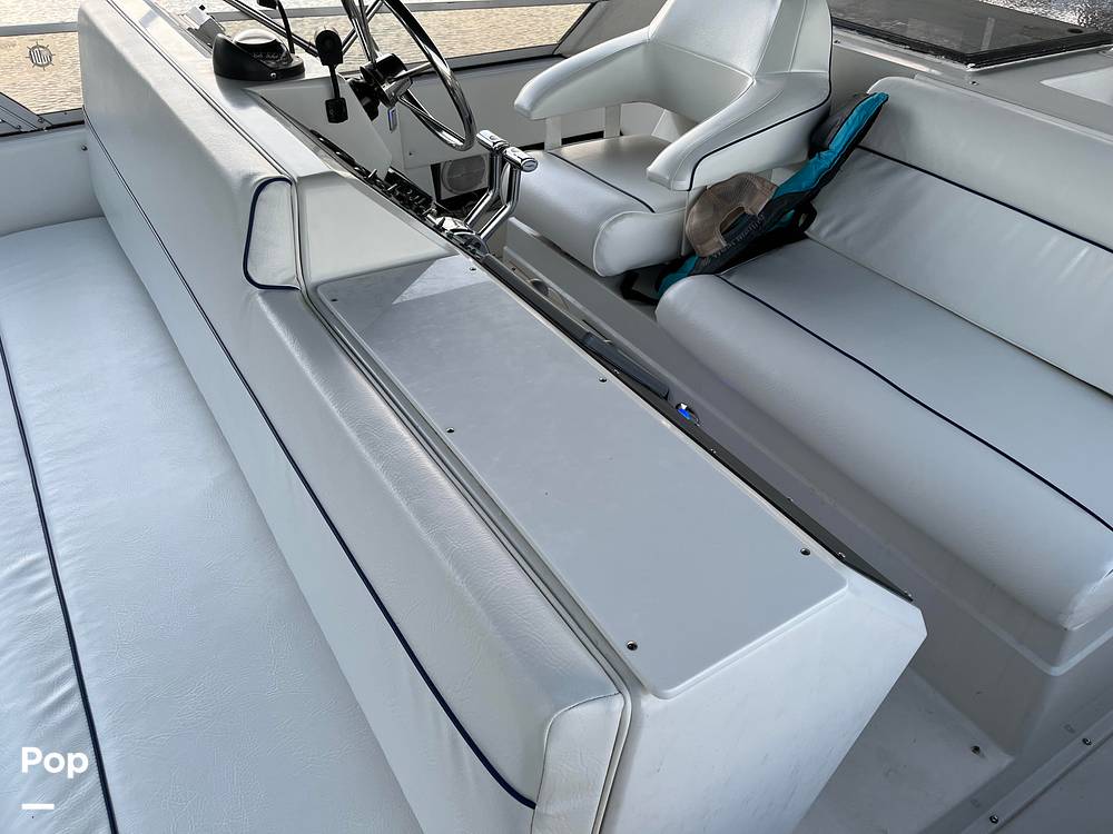 The upper deck is perfect for cruising and has plenty of space for more than a few people to enjoy. Helm has all the electronics needed for Great Lakes cruising. A collapsible bimini is great for weather versatility.