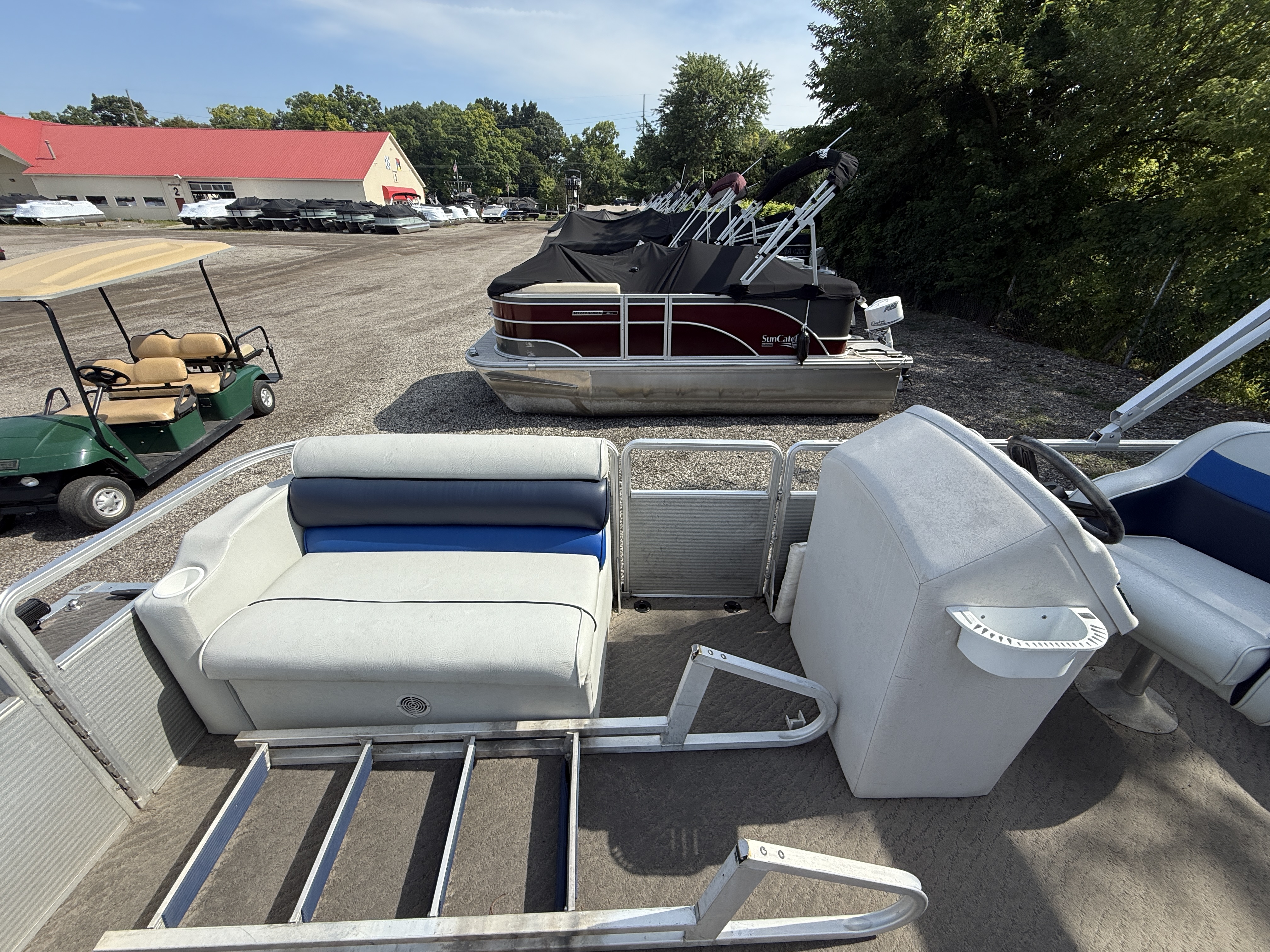 Boat comes with updated upholstery, power bimini top, full mooring cover, removable boat table, swim ladder!