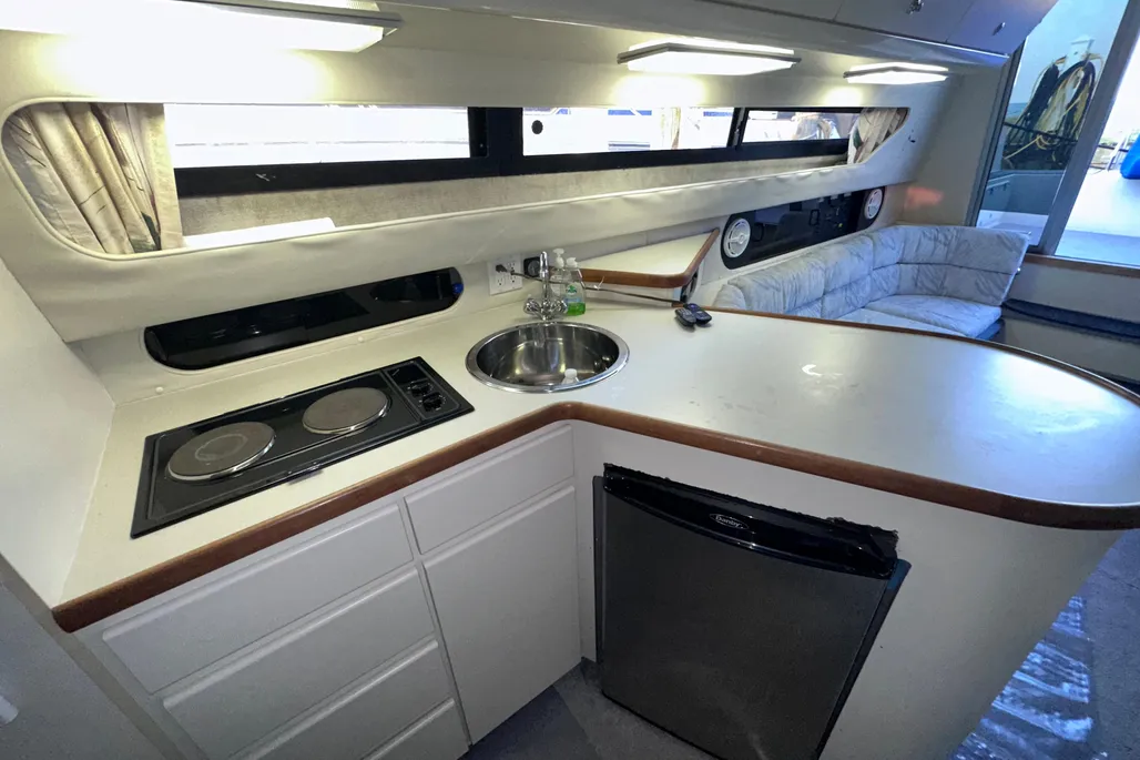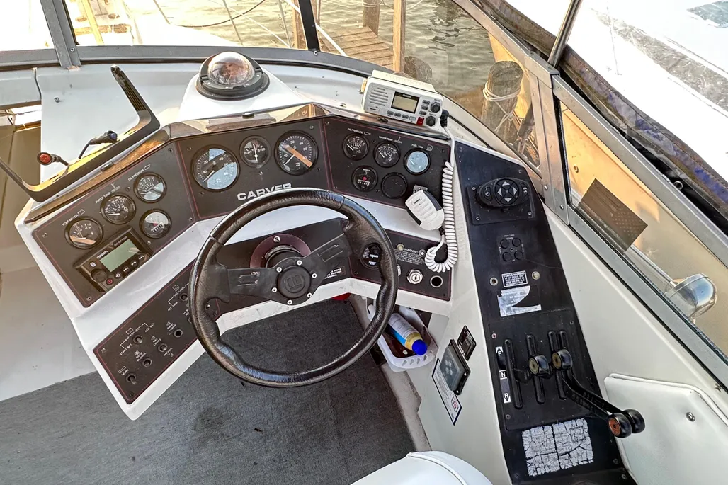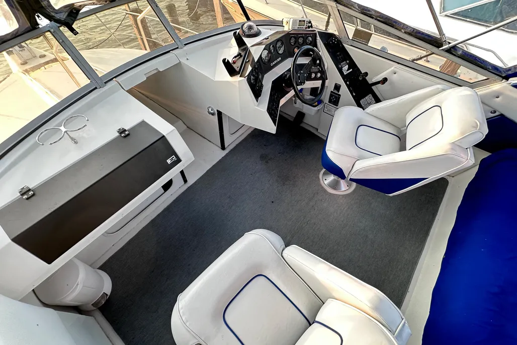 This Carver Santego is powered with twin Crusader XL 350’s, V-Drives. AC/Heat, Generator, Upgraded Stereo System (Fusion), GPS, VHF Radio, Flat Screen TV and more! She is in the water at Emerald City Harbor and coming out soon for winter storage.