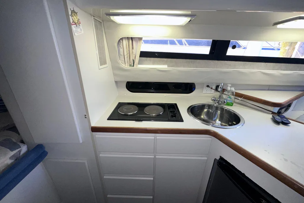 This Carver Santego is powered with twin Crusader XL 350’s, V-Drives. AC/Heat, Generator, Upgraded Stereo System (Fusion), GPS, VHF Radio, Flat Screen TV and more! She is in the water at Emerald City Harbor and coming out soon for winter storage.