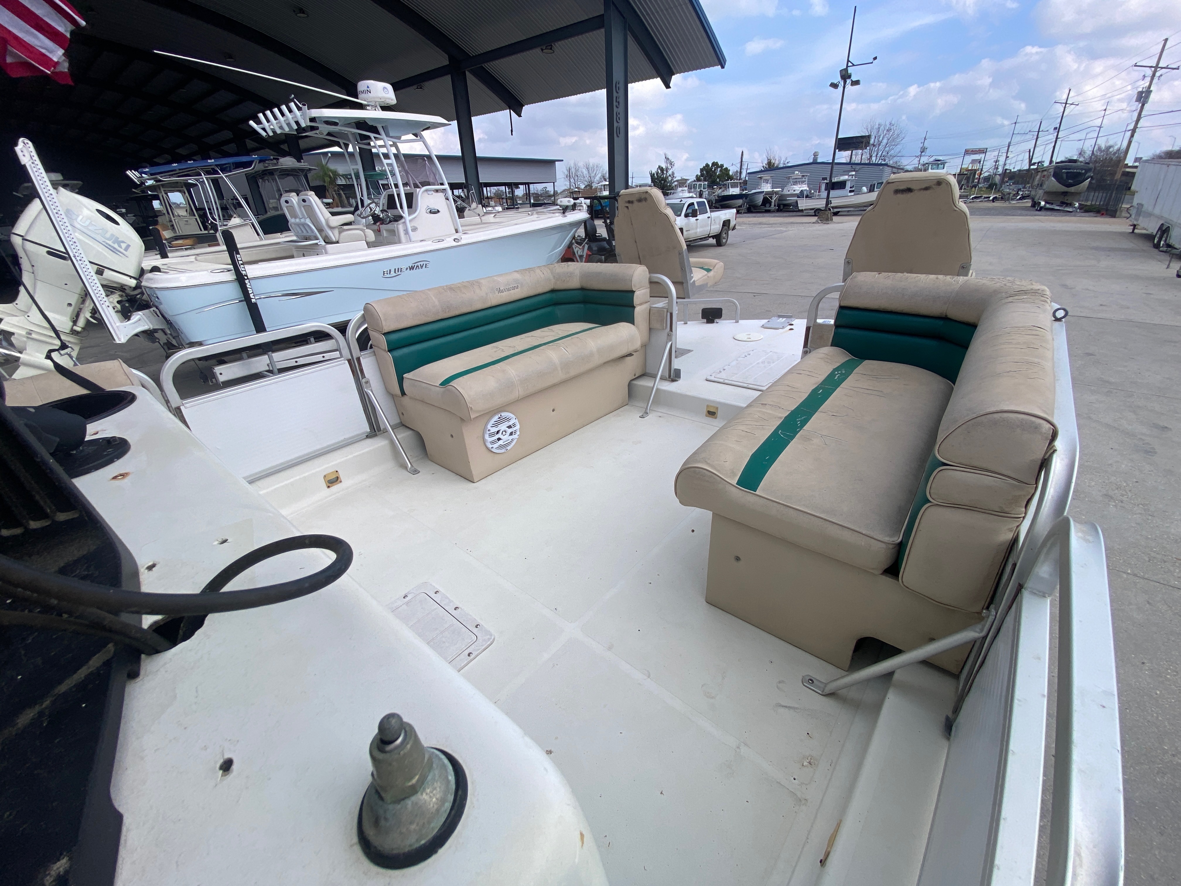 The layout offers plenty of pontoon-style deck seating, making it ideal for groups, along with dual bow fishing seats for anglers who want to cast comfortably. Whether you’re relaxing or reeling in fish, this boat does it all.