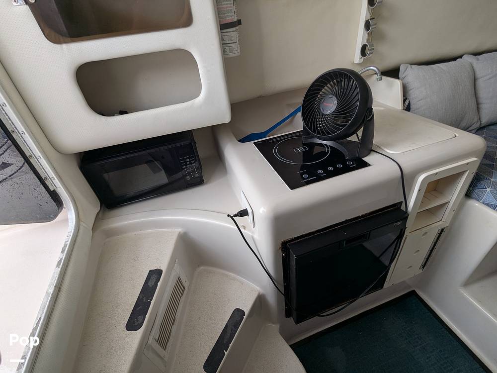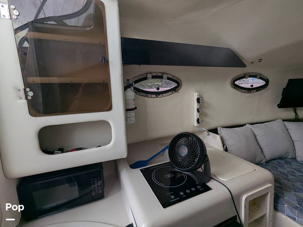 This 29' Pro Line is a solid vessel for any sport fisherman or a family looking to escape for the weekend. The large open deck area provides plenty of space for fishing. If you prefer to take the family out for a cruise, there is custom bench seating, a swim platform, and a ladder. The amenities include a galley, sink, microwave, induction stove top, mini refrigerator / freezer, and storage cabinets. There is a stand-up shower in the head, forward-V and mid cabin berths, A/C, TV, plenty of storage, live well, fresh water tank, windlass anchor system with stainless steel anchor and chain.