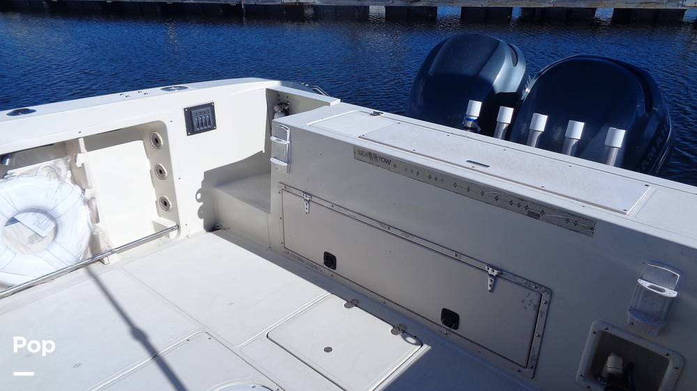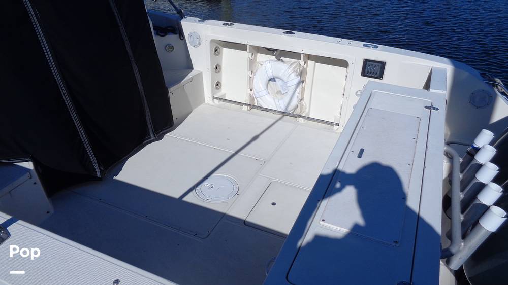 This vessel is rigged for all types of fishing- inshore or offshore are both possible. The boat is equipped with a bait well, live well, rod and gear storage, and coolers with drains. The almost 10-foot beam provides a huge cockpit to get around in.