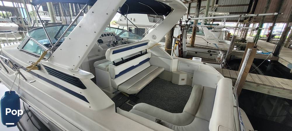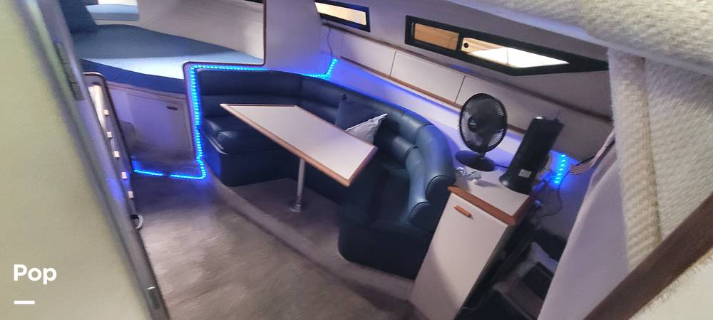 This vessel has a roomy cockpit which is perfect for cruising and enjoying the water. Lots of padded seating and a Bimini Top for relief from the Sun. Swim platform for water sports access to the water.
