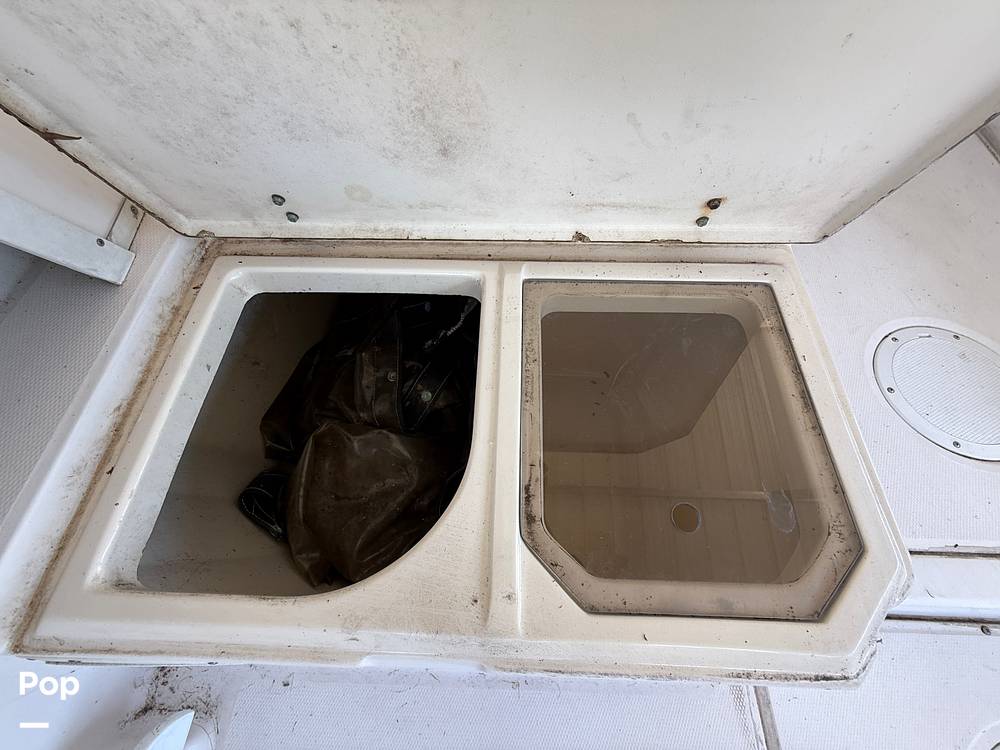 Heading into the cabin, you will find a sink, forward hatch, cabin lights, speakers, and a head with an inline macerator.