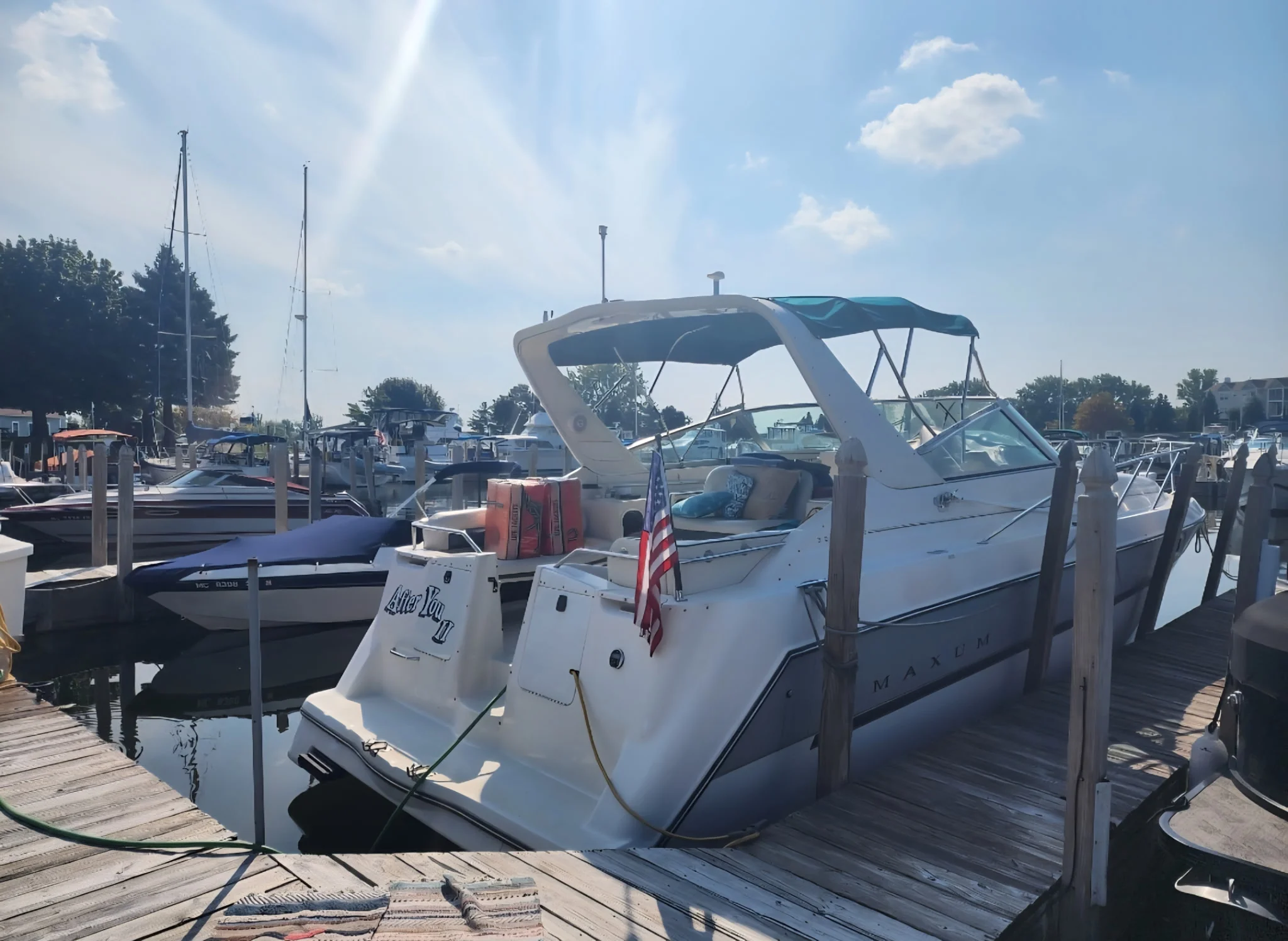 Introducing the 1995 Maxum 3200 SCR—a perfect blend of performance, luxury, and comfort on the water. Powered by twin 454 engines and generator, this powerful cruiser ensures thrilling speeds and reliable handling, whether you’re cruising the coastline or anchoring at your favorite spot. With spacious accommodations, including a full galley, a comfortable salon, and a large, well-appointed aft deck, the 3200 SCR is designed for extended weekends and day trips alike. The sleek, timeless design and solid construction offer both style and durability. Whether you're a seasoned boater or a first-time owner, this Maxum 3200 SCR delivers the performance and relaxation you deserve. Get ready to embark on your next adventure with confidence. Call us at Skipperbuds in Bay City (989)894-4181