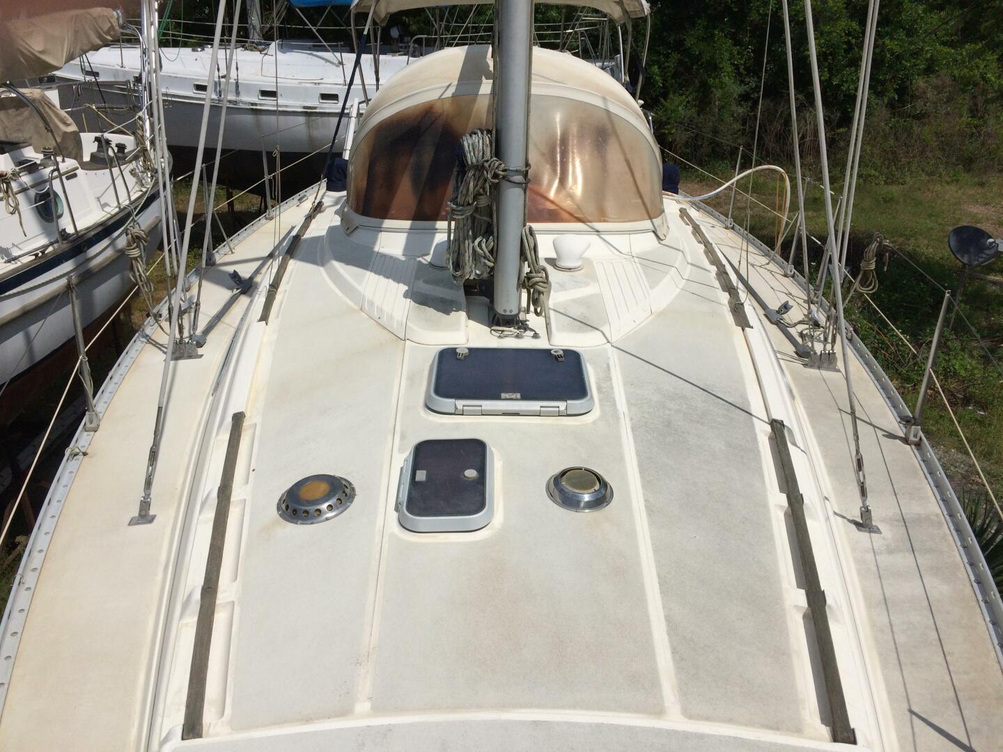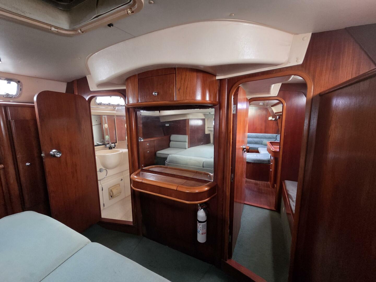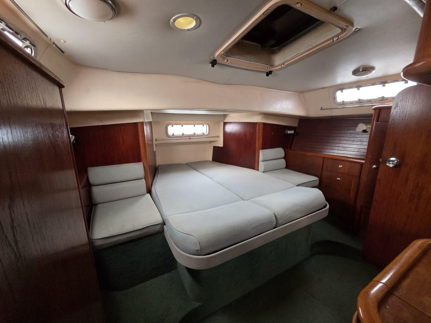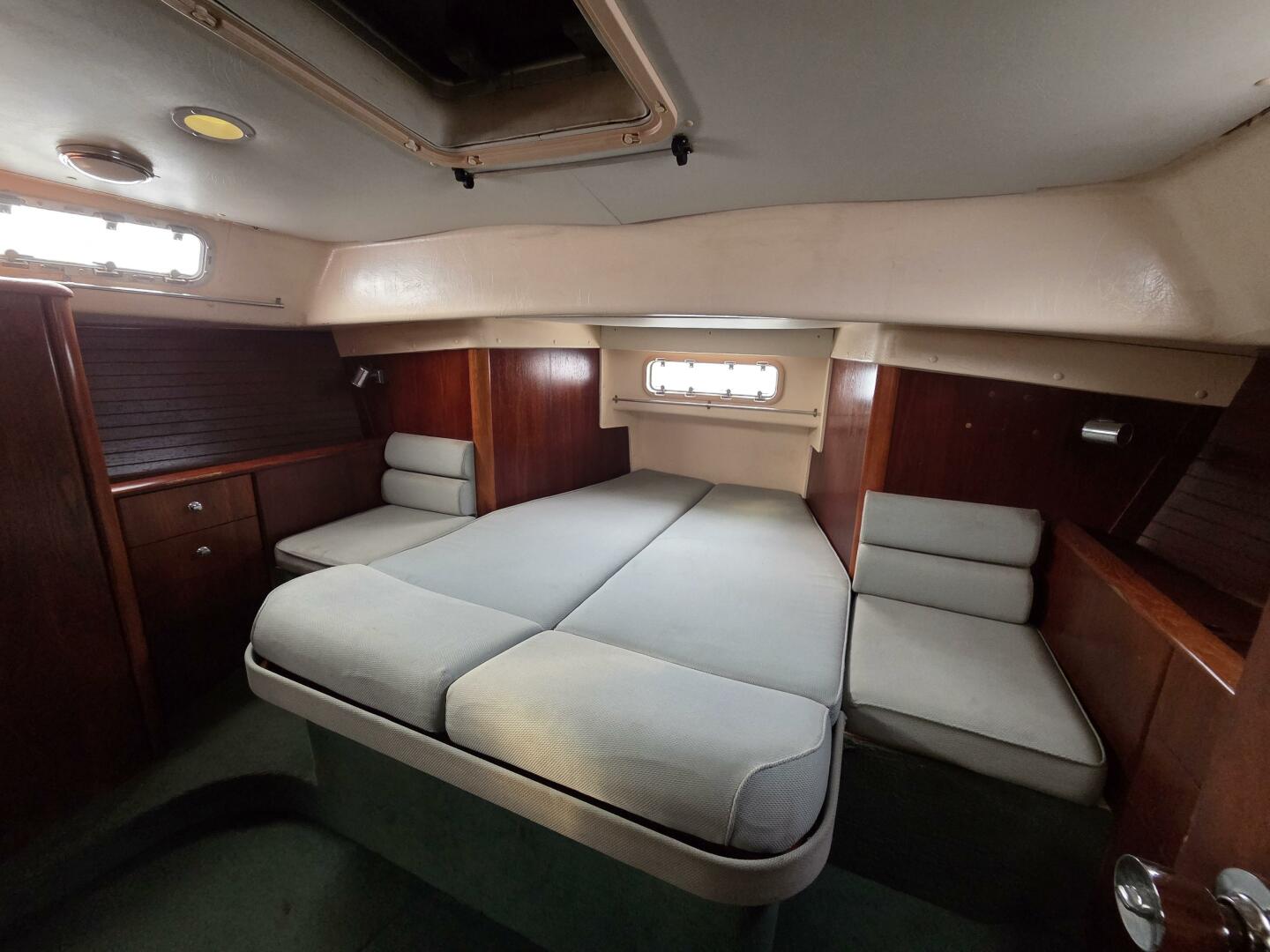 The Moody 38 CC, designed by Bill Dixon, is a proven bluewater cruiser built to Lloyds standards. She combines comfortable accommodations with a solid, reliable build. At 38 feet, she is large enough for extended cruising yet remains manageable in terms of handling and running costs.Her desirable center cockpit layout, spacious aft cabin, and sugar scoop stern make her an excellent choice for long-distance cruising.This vessel has not been used in recent years due to the owner’s illness and is currently on the hard, an ideal location to get her prepared for her next voyage. As is sale.HighlightsNew bottom paint/antifoul March 2025New hot water heater 2025Gorgeous teak laid in cockpit sole and cockpit seats - all glued, no screws!Lewmar salon port holes were rebuilt professionally (old ones were grazed) and rebedded. All other port holes were cleaned and rebedded as wellKeel Bolts replaced in 2013All thru hulls replaced with Forespar Marelon (apart from galley sink) in 2012Boot stripe painted in 2012Engine & TankageEngine: Volvo MD22L Diesel, 50 HP (hours unknown)Engine accessible from four sidesFuel Tank: 50 gal (steel that was serviced in 2012)Water Tanks: 96 gal (port & starboard - aluminum)Holding Tanks: 2x (forward & aft)Accommodations2/3 cabin, two head layout. sleeps 7Large aft cabin with walkaround double berthForward v-berth cabin with 2 single that convert to a double berthStarboard ‘cabin’ single passage berthSalon sleeps extraLarge main saloon with folding dining table2 heads, forward and aft, both with showers (wet head)Nav Station to starboardAmple hanging lockers and storage throughoutLiquor locker in saloonGalleyLarge galleyDouble-bowl galley sinkGimballed 2-burner propane stove with oven and grill12V refrigeratorDeck and HullAll new Forespar Marelon thru-hulls (apart from galley sink)Drive Type: ShaftPropeller Type: Fixed 3 bladeSugar scoop transom with swimming ladderCenter CockpitGround Tackle: 35 lb plough anchor with 100 ft of 5/8" chain that is marked at 25ft intervals, additional rodeNew teak cockpit seating and soleFolding cockpit tableElectronics/Electrical/Plumbing7 inch Raymarine chartplotter (2014)Hydraulic autopilotXantrex True Charger 2 (40A)30A shore power12V lighting and fans110V outletsHot water heater12V water pumpHot water via 110V and engine coolantRig & SailsIn-mast furling mainsail (serviced by Doyle in 2012 very light/no use since)Roller furling Genoa (serviced by Doyle in 2012 very light/no use since, needs new suncover) Age of sails unknownAge standing rigging unknown Running rigging (servicable, last replaced 2014)Double spreader mastSeller’s disclaimerBatteries removed. Owner will provide 1 engine start battery, buyer to installNeeds new Canvas (dodger and bimini), Framework in placeForesail needs suncover to be servicedEngine needs servicingPhotos of boat in the water are not current (around 5 years old)As-is saleSpecsLength Overall: 37.50 ftLWL: 31.50 ftBeam: 12 ft 6 inDraft: 4 ft 6 inDisplacement: 18,000.00 lbSail Area: 642 sq. ft.Builder: Moody YachtsDesigner: Bill DixonModel: 38 CC (Center Cockpit)Year: 1995Type: Cruising SailboatHull Material: FiberglassRig: Sloop – In-Mast Furling