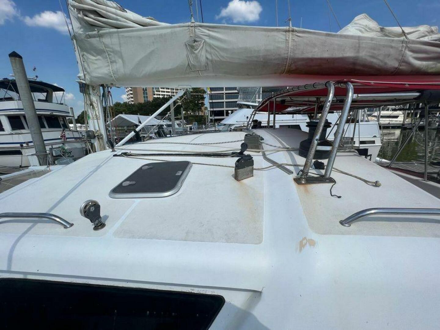 The Voyage Yachts 47 Mayotte seduces by its exceptional sailing qualities, it allows to taste the sensations of speed while keeping a feeling of comfort and balance. The Mayotte windows provide an exceptional amount of daylight with a panoramic view from the saloon equipment level that will satisfy the most demanding sailorsElegant design and interior décor arranged to provide you with a stay that is as pleasant as your own home.Practicality: Innovations that leave nothing to chanceRig: Aluminum Spar craft mast, boom, and rigid vangPro-furl roller-furling units for genoa and staysail/storm jib (staysail furler needs servicing/new bearings)stainless steel standing riggingRunning backstaysSolid, heavy-duty South African Sparcraft rig, which could do with some cosmetic attention in areas+- 9’ carbon fiber removable bowsprit, for asymmetrical/screecher, etc.Sails: Total – 3: North Sails fully-battened mainHarken Batcar systemfurling genoa in good conditionfurling staysail/storm jibstack-pack with lazy-jackscontinuous line furler for use with a screecher, etc. (no sail)Winches: 2 x Harken 56 electric 2-speed S/T coach roof winchesLewmar 44 2-speed S/T mainsheet winch2 x Lewmar 50 2-speed S/T cockpit winches (running backstays & down wind sails)Harken 44 electric 2-speed S/T winch at base of mastLewmar 2-speed S/T winch on mast2 winch handlesEngines: 2 x 54hp Yanmar 4JH57SD50 sail drives (stbd main diaphragm seals new Dec 2017, new lower seals, oil and anodes March 2020)approx. 600L diesel storage in 2 GRP tanks100L diesel storage in stainless tank for generatorAuto Stream 3 blade stainless feathering propellers, with adjustable forward and reverse pitch (easily done in the water)Steering: Bulkhead wheel cable steering (individual cables to each rudder)Garmin autopilot system with Ray marine rotary drivebinnacle compassElectronics: Garmin DSC VHFGarmin 5012 12” multifunction display at helmGPS antennaGarmin radar (requires repair/new cable?)Garmin sailing instruments with repeater at nav station (Garmin masthead wind transducer needs replacement)12v color monitor in saloon to repeat Garmin 5012Icom 802 SSB radio with antenna tuner (requires new antenna)Electrical: 2018 Nanni 12kw diesel generator - never hooked up, never used1005W of solar (3 x 335W LG NeOn2 panels - new 2018)30amp and 45amp Victron Blue Solar MPPT solar regulators (2017)Victron Bluetooth dongles for monitoring MPPT's (2017)Victron MultiPlus 3000w/120amp 220V inverter/charger220v outlets throughout boatSamlex 1500w 110v inverter (new 2018)4 x 200amp/hr Ceil Solartron heavy-duty deep-cycle batteries (new 2017)MASE IS8 8kw 1500rpm diesel generator in cocoon (uses Yanmar 3TNE engine) - low hours & runs well, but fair cosmetically and control panel has been bypassed, due to incompatibility of new MASE replacement panelAccommodation: Berths – 8 in 2 queen and 2 double cabins3 heads with showers (1 head is full sized electric, other 2 are compact bowl manual flush)Ultrasuede ceiling liners throughout Red salon upholstery Cherrywood height-adjustable saloon table with folding leaves to convert from 4 to 8 seaterloose custom carpeting over marine ply flooring in hullsCarpeting removed from saloon/galley floor. The intention was to fit woodgrain vinyl plank flooring, but the new owner can decide what they wish to fitPlenty of storage midships in both hullsBlinds/shades/insect screens over almost all port lights and hatchesGalley: 4 Burner Eurogas propane stove topEurogas propane oven with grill12v top-opening 140L fridge220v Grunert top-opening 165L fridge **220v Grunert top-opening 150L freezer **** Refrigeration notes: The DC fridge has been sufficient for Caribbean cruising and with recent large solar array, owner has been moving away from regular generator use, so the 220v Fridge and freezer have not been in use for some time. Prior to that, they were fully functioning. Wine cooler3 x 20lb steel propane bottlesXintex gas alarm with solenoid shut-off valve (new 2018)twin stainless-steel sink with pressurized hot and cold fresh water and separate faucet for drinking water, plumbed through a carbon filterGalley is exceptionally spacious with tremendous amount of countertop spacePlumbing: approximately 800L water storage in 2 GRP tanks and 1 stainless tank4 electric and 2 manual bilge pumps (manual pumps new June 2020)Village Marine +-25 gal/hr 220v water-makersmall Katadyne Power Survivor 12v backup water-maker (likely needs new membrane, as has not been in use for some time)water heater in stbd engine room, heated by engine, or electric element (new element needed)Safety: 10 Life jackets6 harnesses2 life rings5 fire extinguishersradar reflectorboat hookbucketwooden bungstorchbosuns chair8-man Viking life raft (service was due March 2018)75lb Ronca primary anchor with 300' of 10mm chain (chain in fair condition)75lb CQR secondary anchor+- 30lb Bruce anchor with some chainQuick electric anchor windlass with wired remote and controls at helm4 fendersdock linesExtras: electric dinghy crane with new electric winch in 2018 - incredibly convenient and takes one person only 30sec and almost zero effort to launch or retrieve the dinghyextra-sized teak-slatted aft platformstainless bimini with new grey Shelt rite waterproof fabric in 2018zip-on side mesh screensforedeck mesh shade coversfold out wooden cockpit table (adjustable to 3 different sizes)cockpit cushionstransom hot and cold showerstainless steel charcoal BBQvarious engine/generator/sail drive spares (belts, filters, impellers, oil cooler, etc.)2 spare quarts of unopened 2-part Alex seal Matterhorn White topside paint and converterPirate Lights security system (motion sensor, siren, 2 x key fobs, 2 x multi-color LED spotlights with remotes - all newTwin 2018 Yanmar 4JH57 engines - 270 hours, 3 year warranty remainingPlease Note: This vessel is sold as is and by the owner, without any promises regarding condition or maintenance. The above description is based on the informati