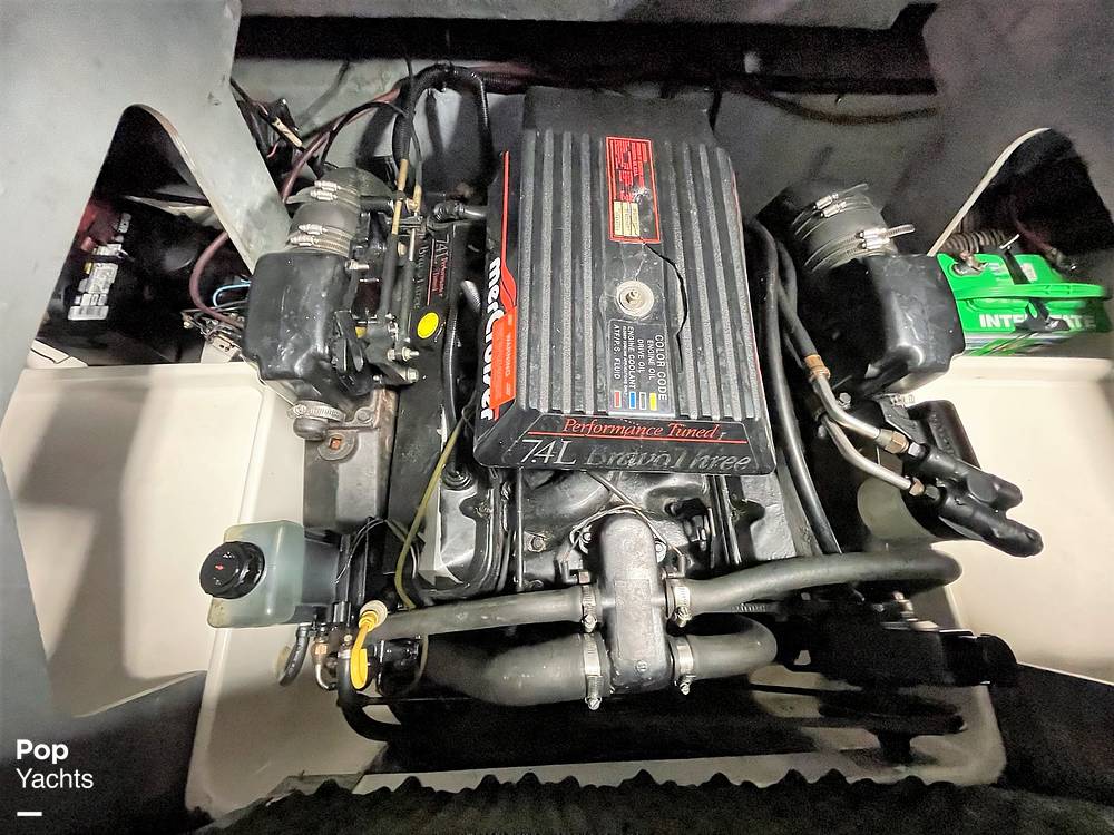 This 1995 Sea Ray 240 Overnighter with Mercruiser 7.4L power and Bravo Three outdrive also has a nice trailer. It is super clean and ready to go boating for a few days or overnight in any weather with the enclosed camper top or opened up for a cruise and a bimini to keep the sun off,
