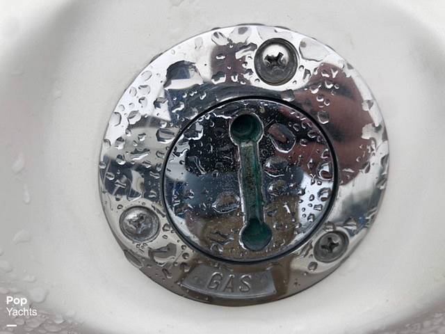 The interior settee is to starboard and converts to a berth. Opposite to port, you'll find a well-appointed galley with sink, microwave, two-burner cooktop and fridge. This is also where you'll see the electrical panel mounted. Aft and to port is the ample wet head.