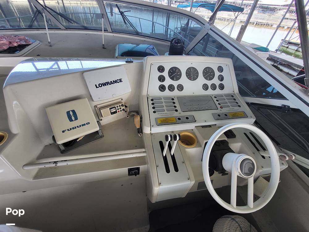 This is the same hull as the 1993-1994 Trojan 370 Express, but the extended swim platform increased her length and also changed her name to Trojan 390 Express. In 1998 she was renamed the Trojan 400 Express.